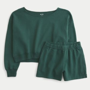 Women’s Easy Off-the-Shoulder Sweatshirt & Fleece Shorts Set