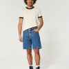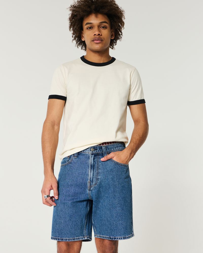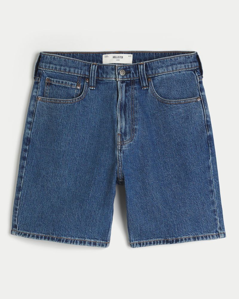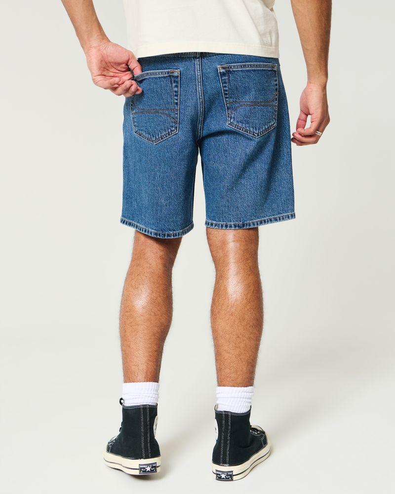 Comfortable denim shorts designed with a loose leg and above-the-knee length. Imported.