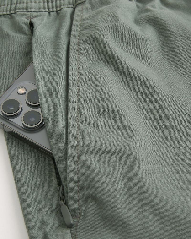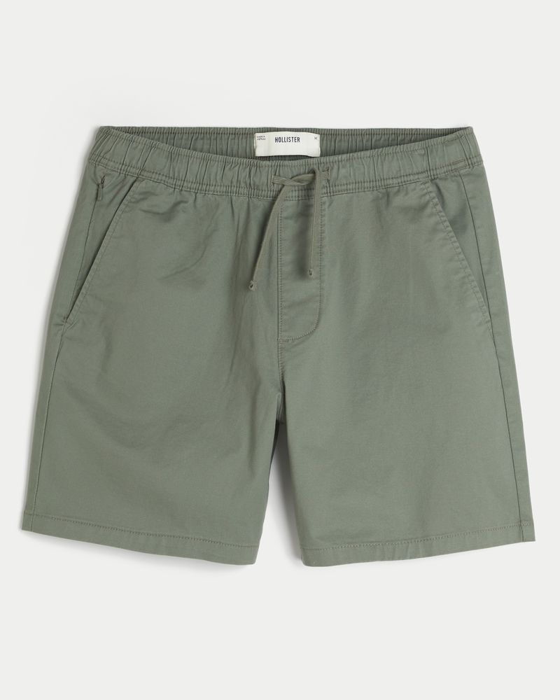 Ultra-comfortable shorts in twill fabric, designed with a pull-on drawstring waist and above-the-knee fit. Pockets, right zipper pocket. Imported.