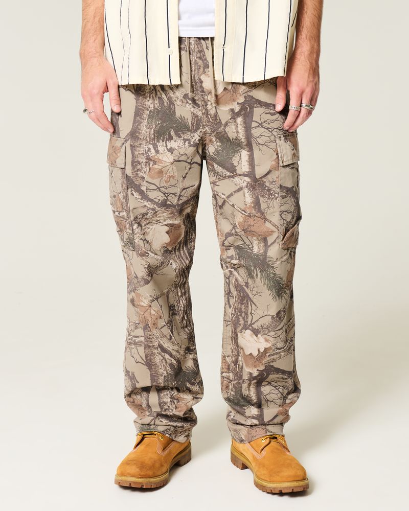 Comfortable twill pants designed with a baggy leg, side cargo pockets and a pull-on drawstring waist. Imported.