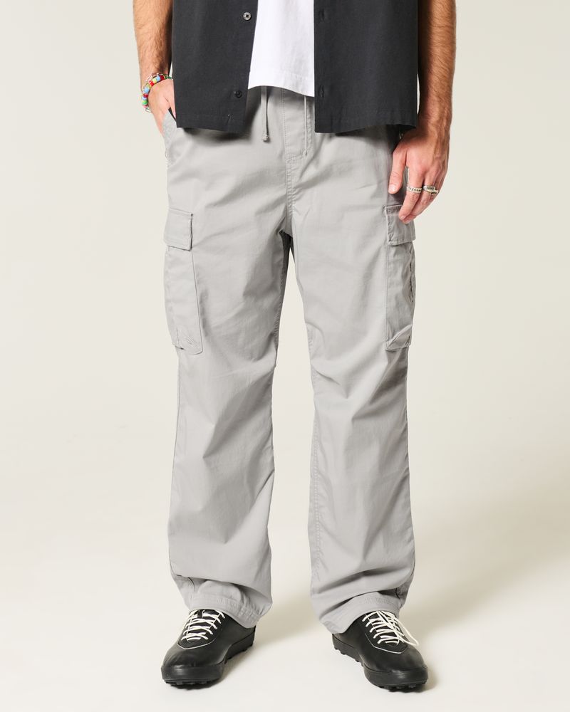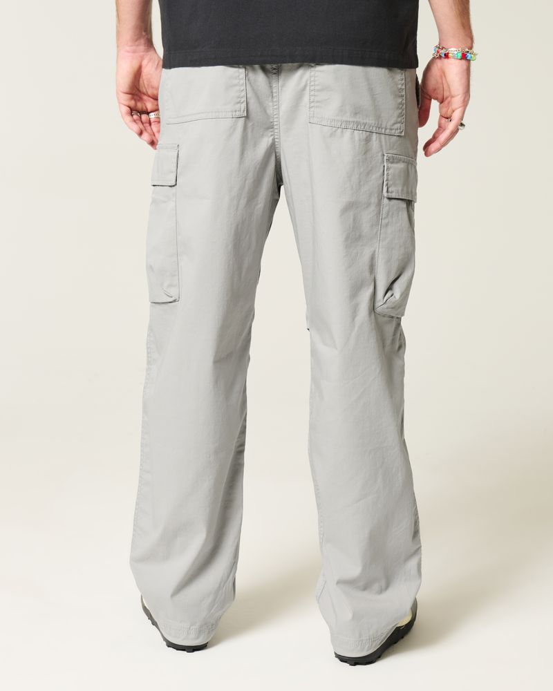 Comfortable twill pants designed with a baggy leg, side cargo pockets and a pull-on drawstring waist. Imported.