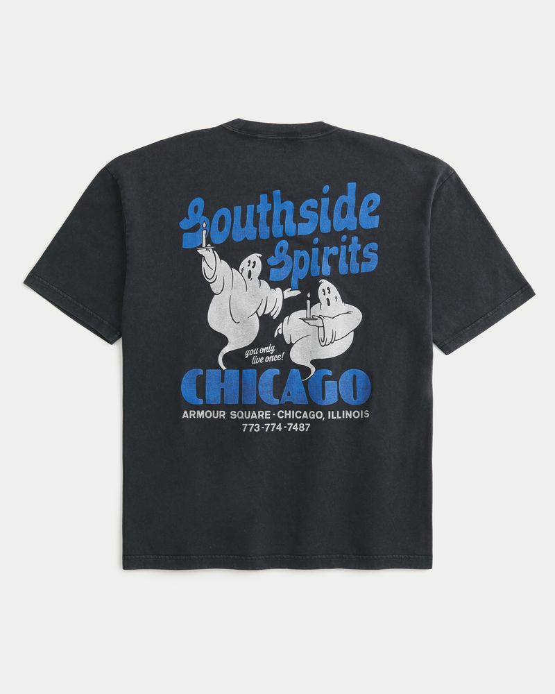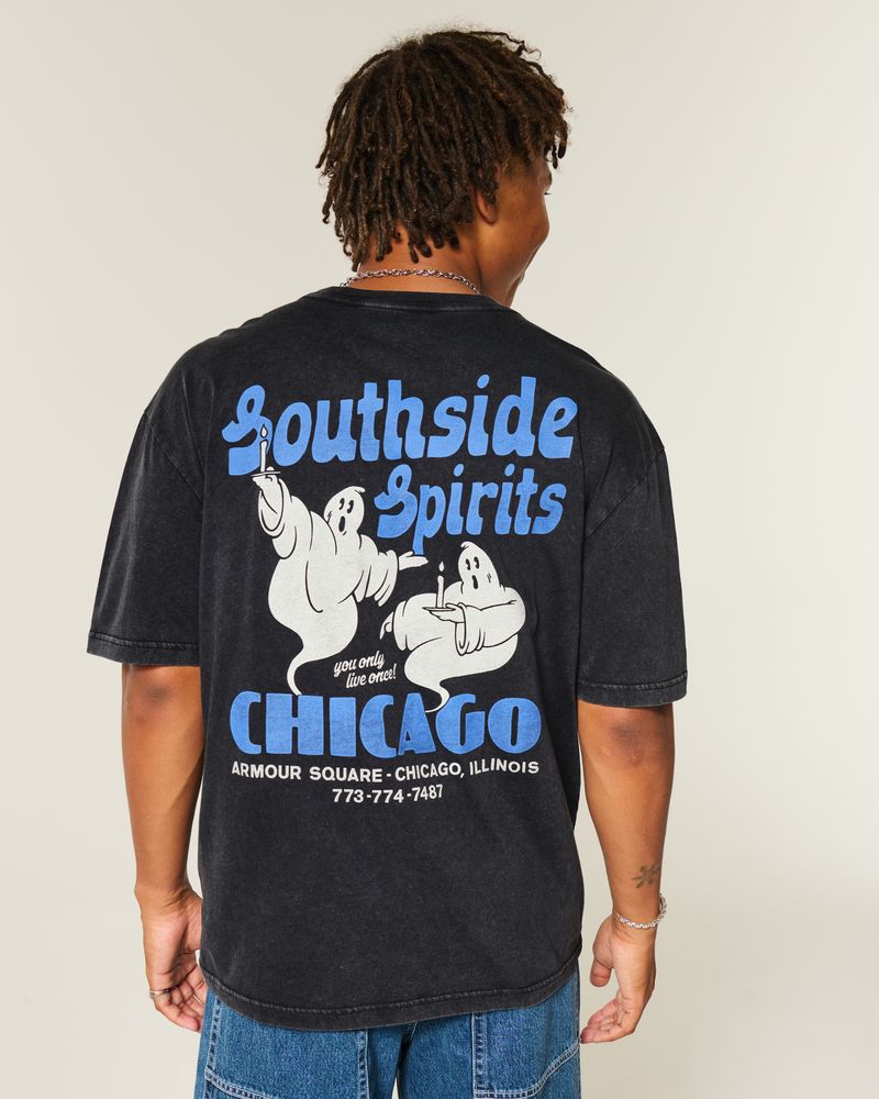 This super soft 100% cotton tee features Southside Spirits Chicago print graphics at the left chest and back. Short sleeves, crew neckline. Baggy Fit. Imported.