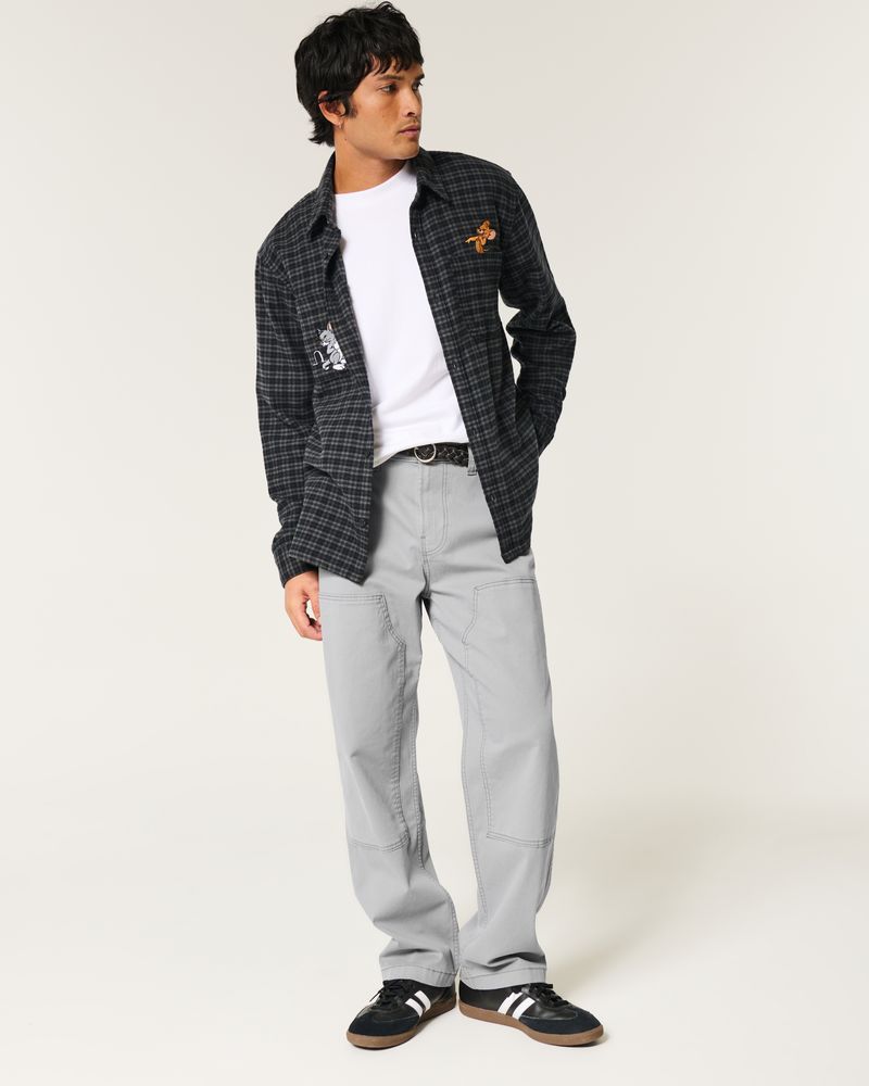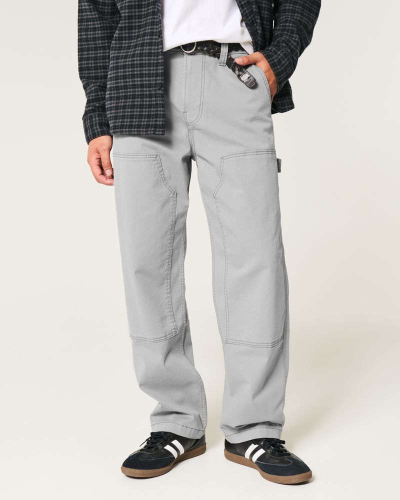 Ultra-comfortable twill pants with utility-style reinforced knee stitching, a loop at the left leg and extra pockets. Baggy leg. Imported.