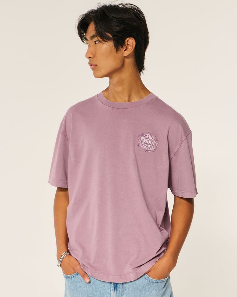 This super soft 100% cotton tee features official licensed The Twilight Zone print graphics at the left chest and back. Crew neckline, short sleeves. Boxy Fit. Imported.
