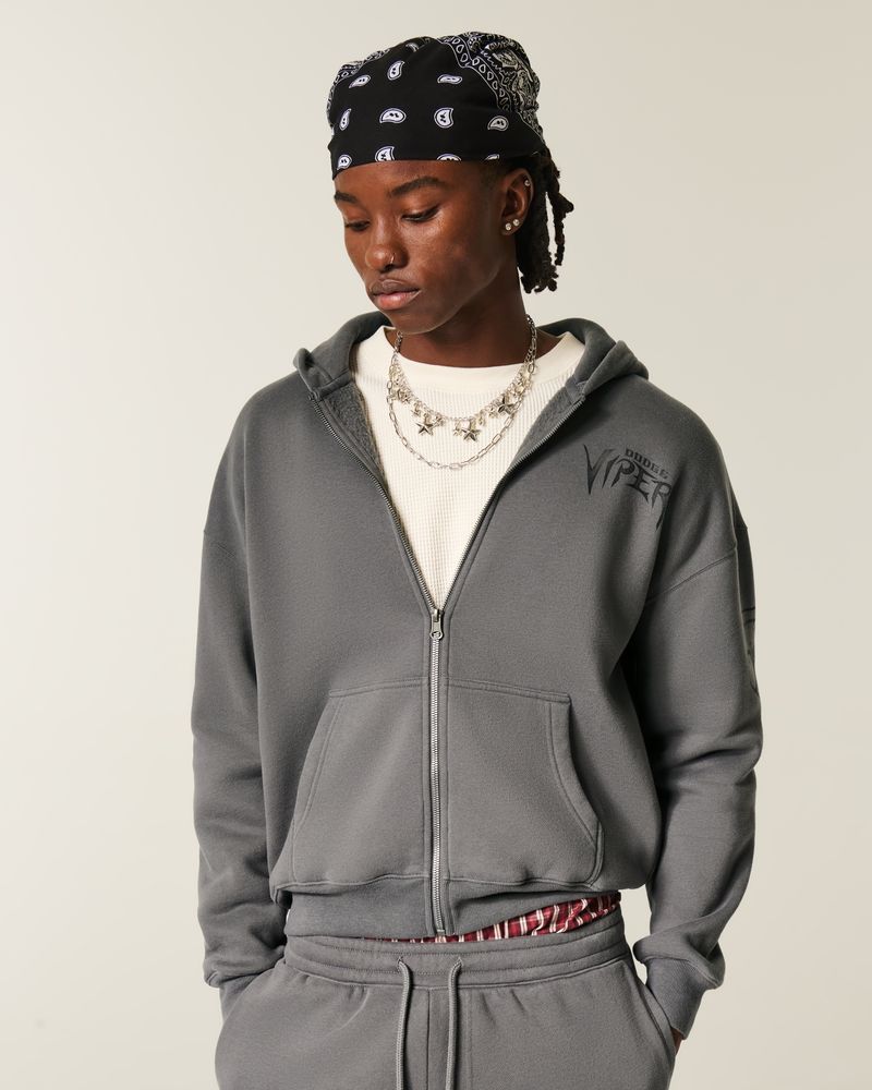 Boxy Dodge Viper Graphic Zip-Up Hoodie