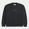 This super soft sweater features flame graphic embroidery at the center chest. Crew neckline, long sleeves, ribbed trims. Boxy Fit. Imported.