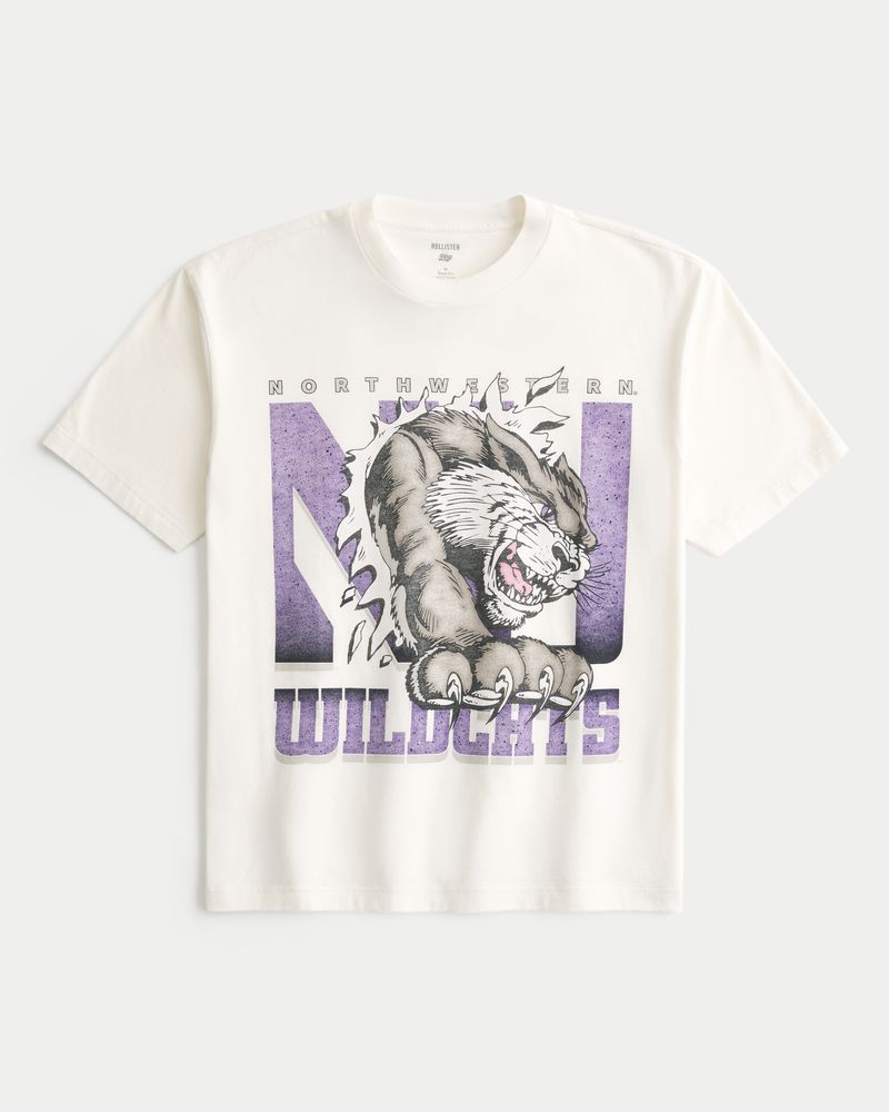 This 100% cotton tee features official licensed Northwestern University Wildcats print graphics. Short sleeves, crew neckline. Boxy Fit. Imported.
