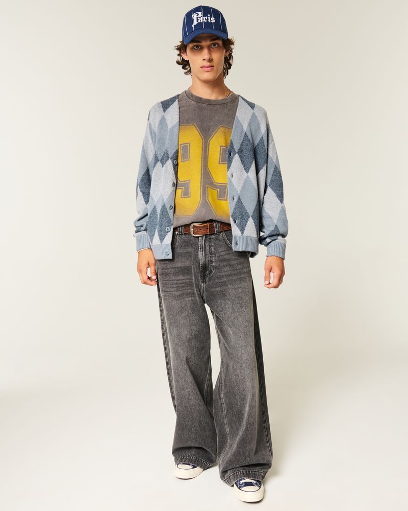 A super soft and comfortable cardigan with a v-neckline and button closure. Ribbed trims, long sleeves, classic pattern. Boxy Fit. Imported.