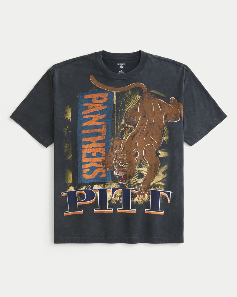 A super soft 100% cotton tee featuring official licensed University of Pittsburgh Pitt Panthers print graphics. Crew neckline, short sleeves. Boxy Fit. Imported.