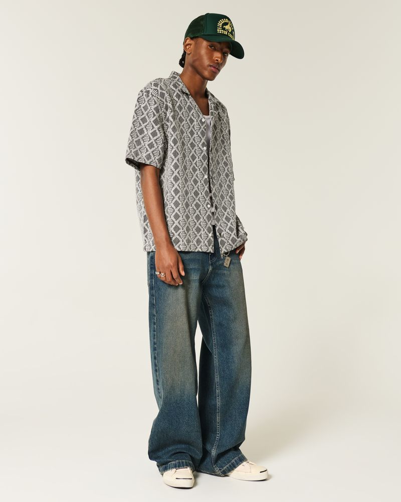 Men’s Boxy Short-Sleeve Crochet-Style Shirt