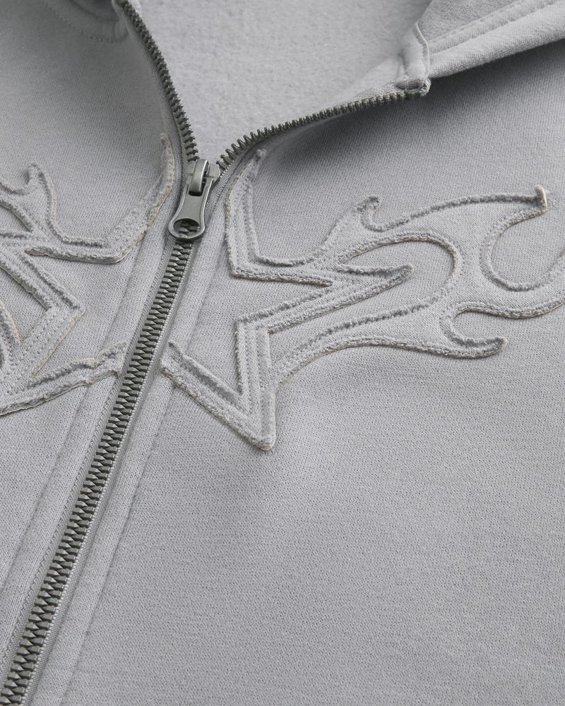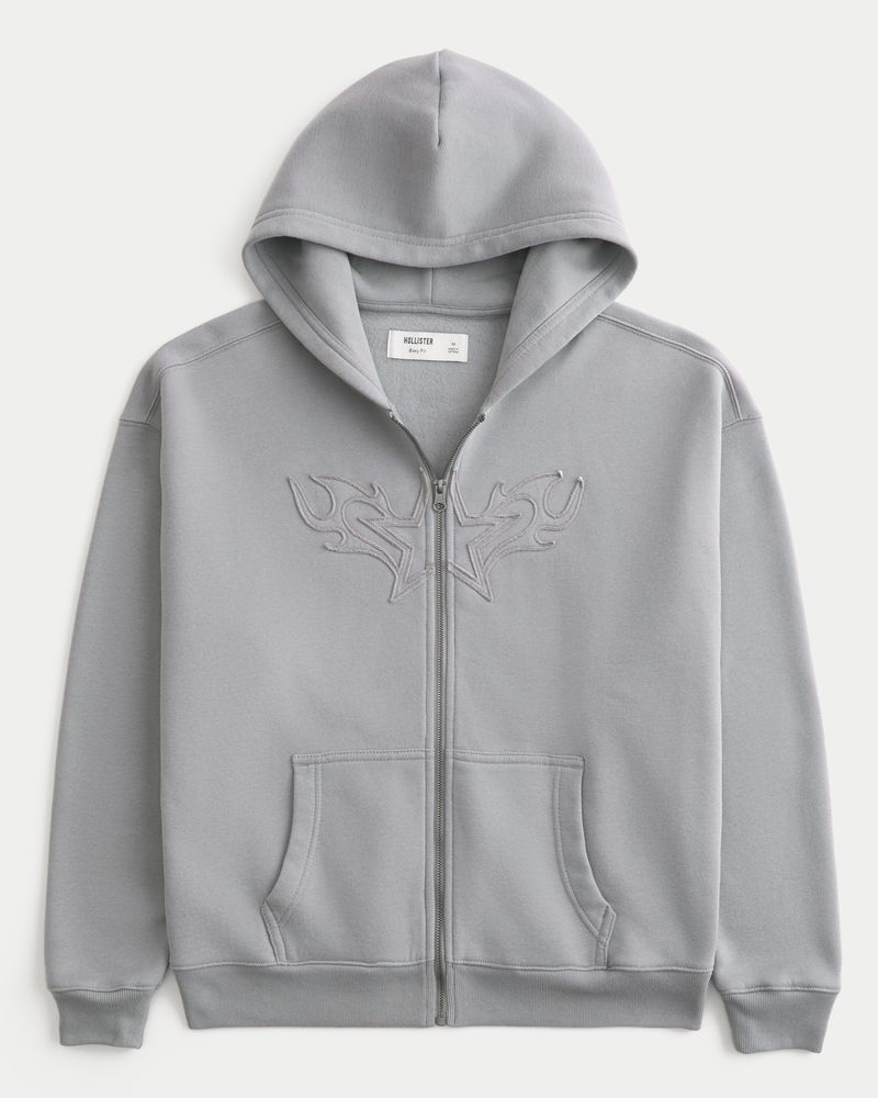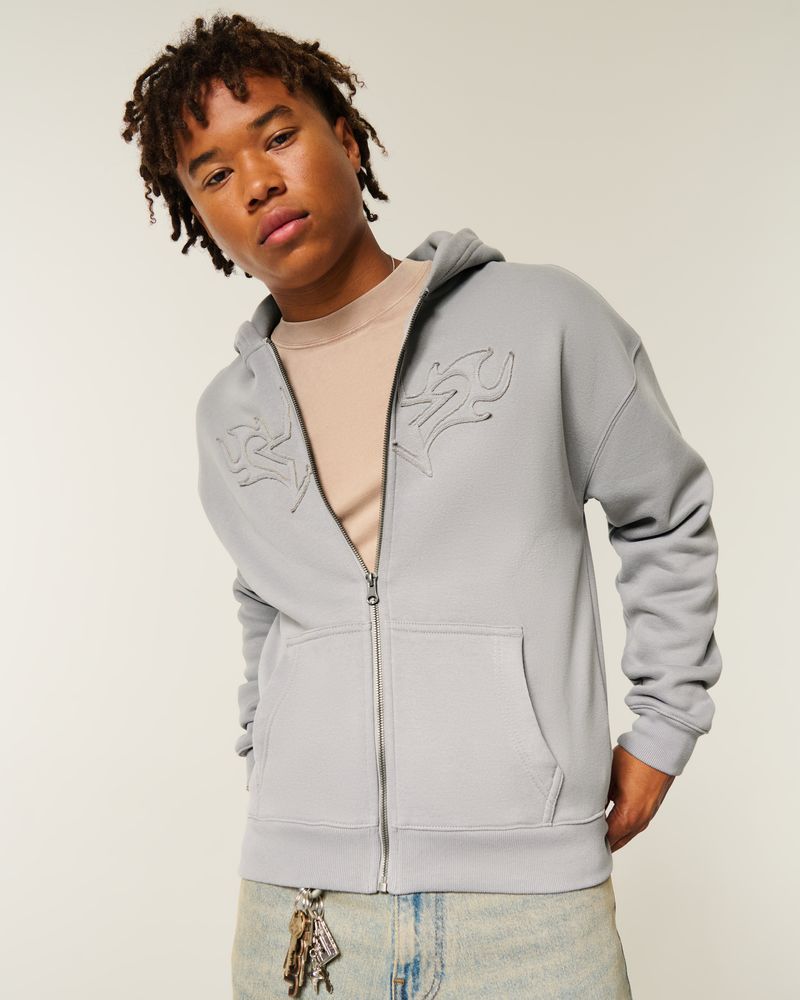Men’s Boxy Star Flame Graphic Zip-Up Hoodie