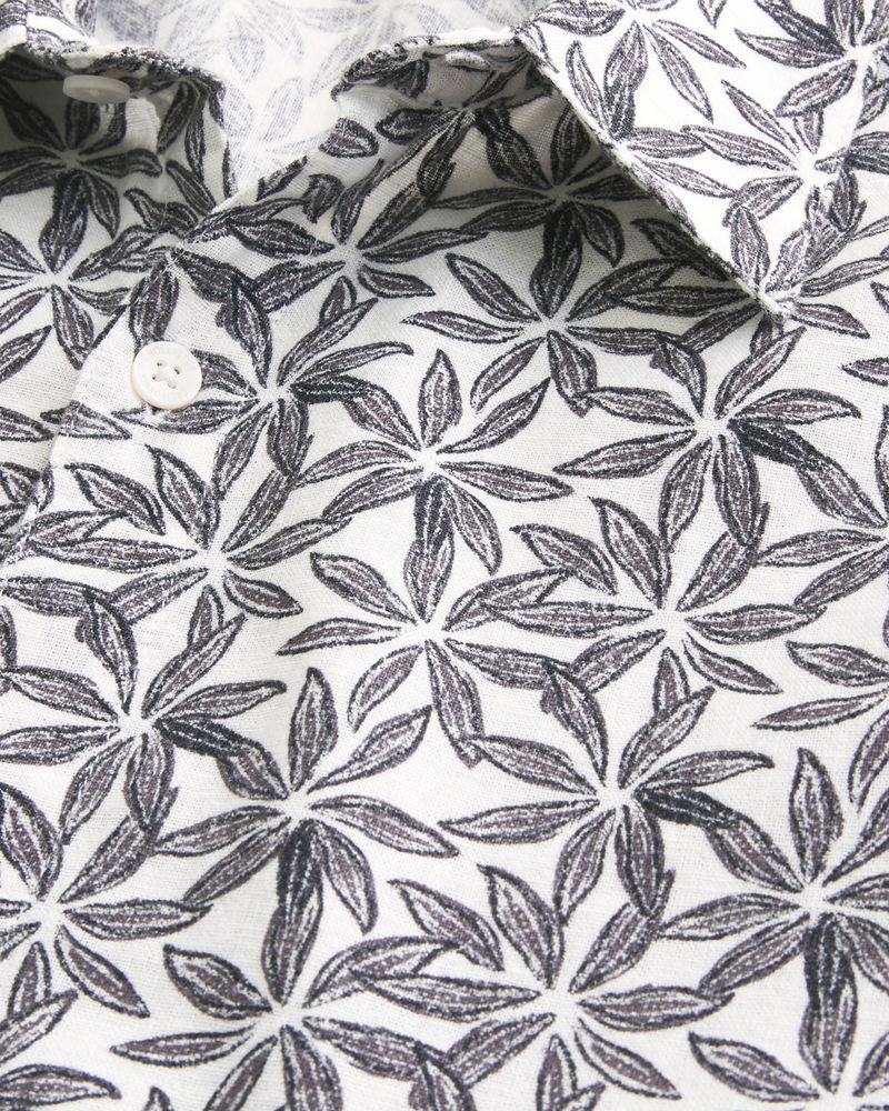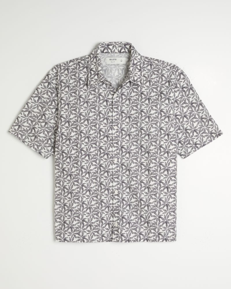 A classic, comfortable short-sleeve shirt in a soft linen blend with an all-over tropical pattern. Full button closure, collar. Boxy Fit. Imported.