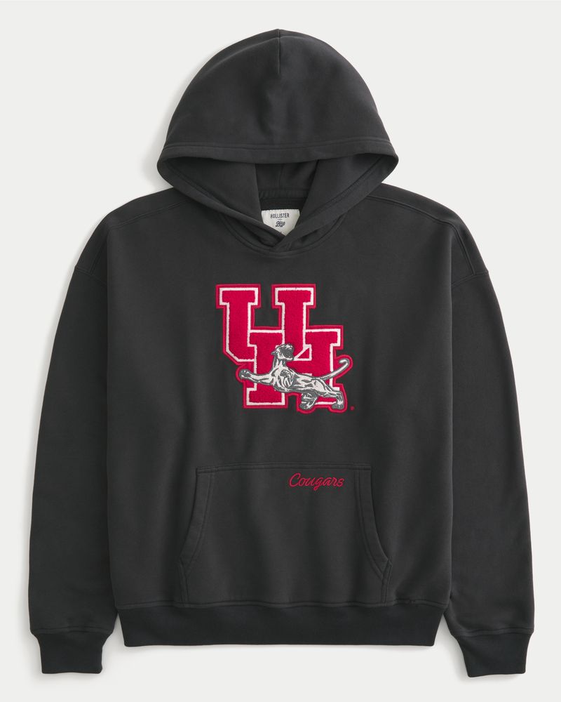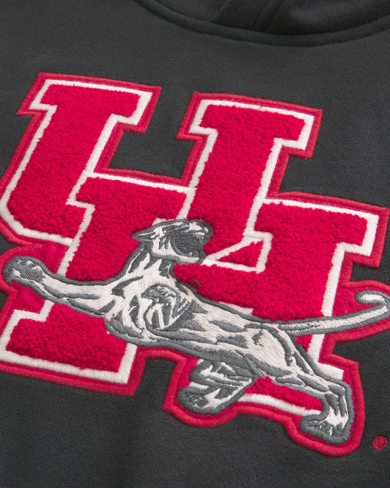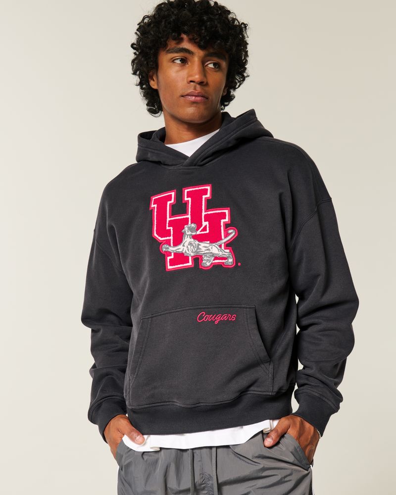 A super soft and comfortable fleece hoodie featuring official licensed University of Houston graphic applique and embroidery. Front pouch pocket, long sleeves, hood. Boxy Fit. Imported.