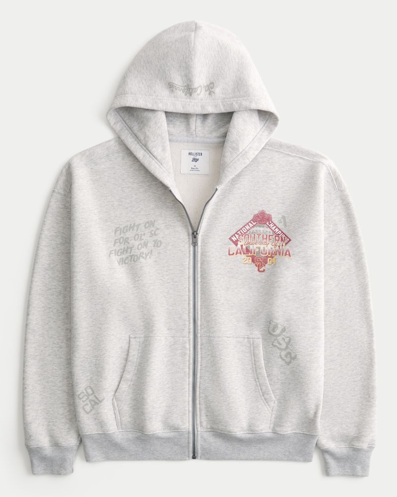 Boxy University of Southern California Trojans Graphic Zip-Up Hoodie