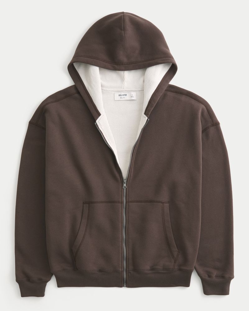 Men’s Boxy Waffle-Lined Zip-Up Hoodie