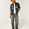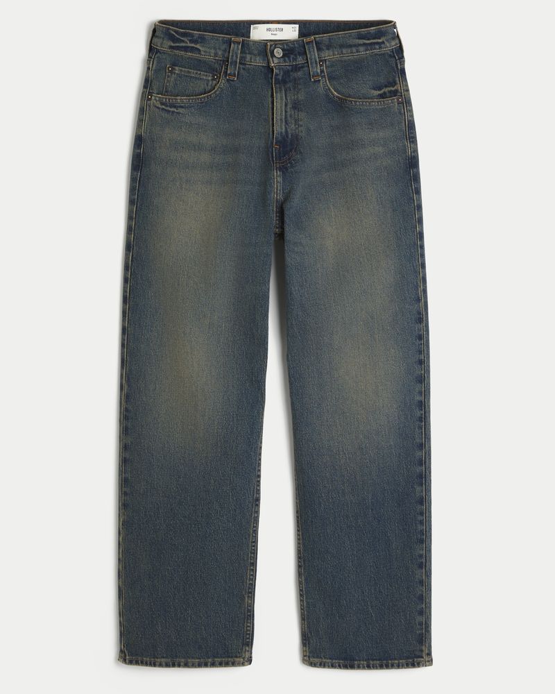 Comfortable denim jeans in a dark wash, designed with a baggy leg. Fading, whiskering, classic 5-pocket styling. Imported.