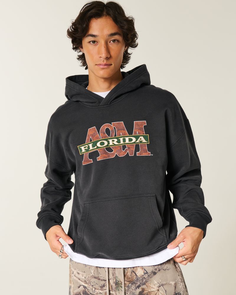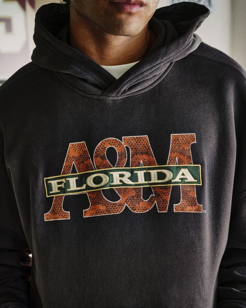 A super soft fleece hoodie featuring official licensed Florida A&M University print graphics. Hood, long sleeves, front pouch pocket. Imported.