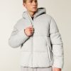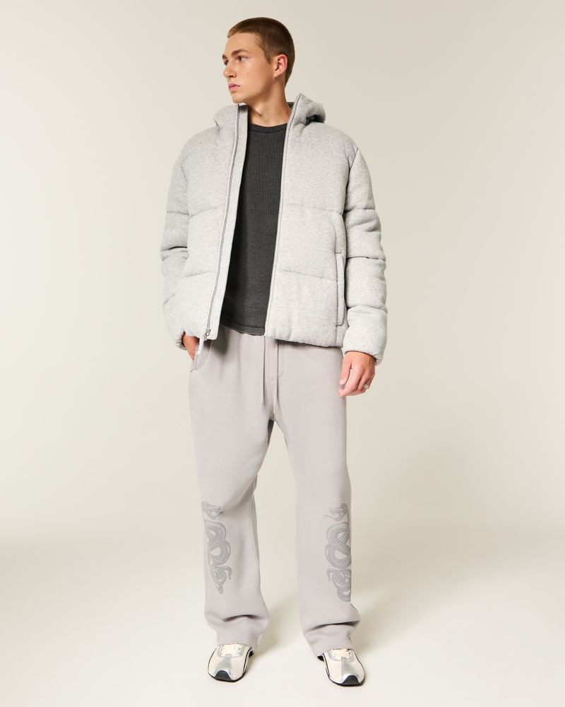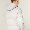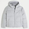 A super soft and comfortable puffer jacket in fleece fabric, with quilted channels, pockets and a hood. Full zip-up closure, cinched hems. Imported.
