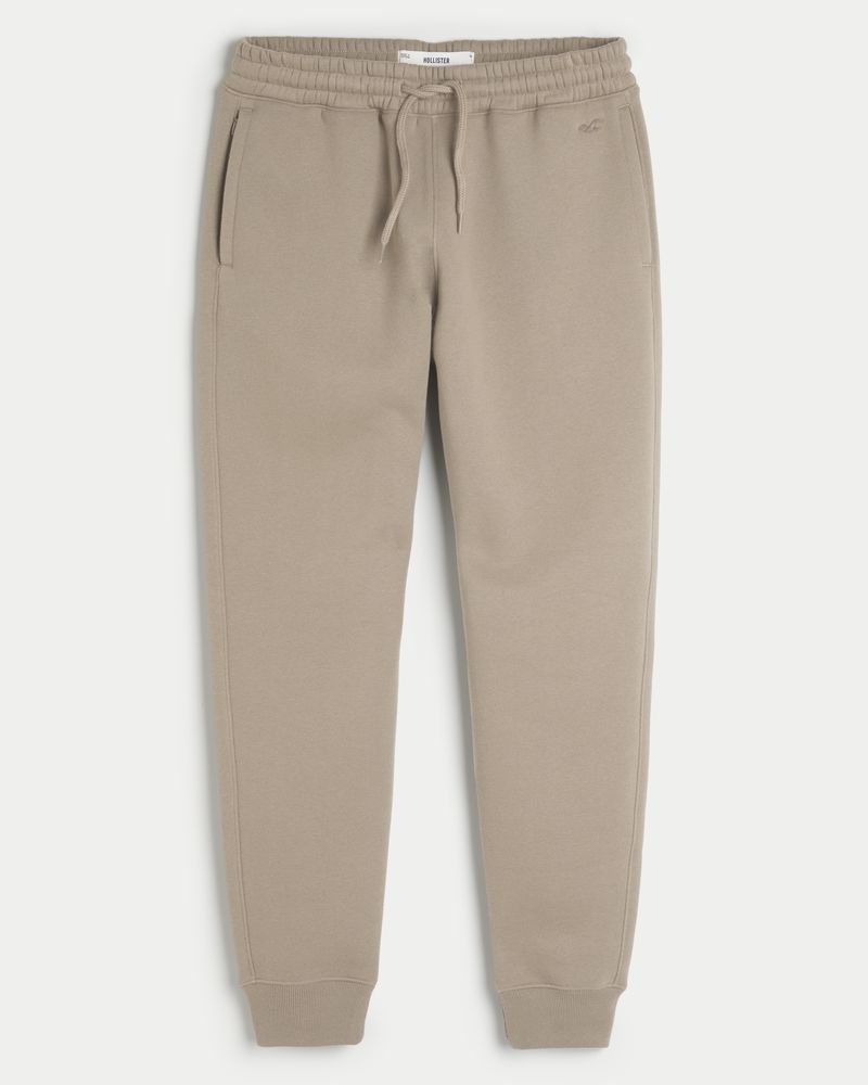Super soft fleece joggers with a drawstring waist and banded hems. Embroidered logo icon near waist, pockets, right zipper pocket. Imported.