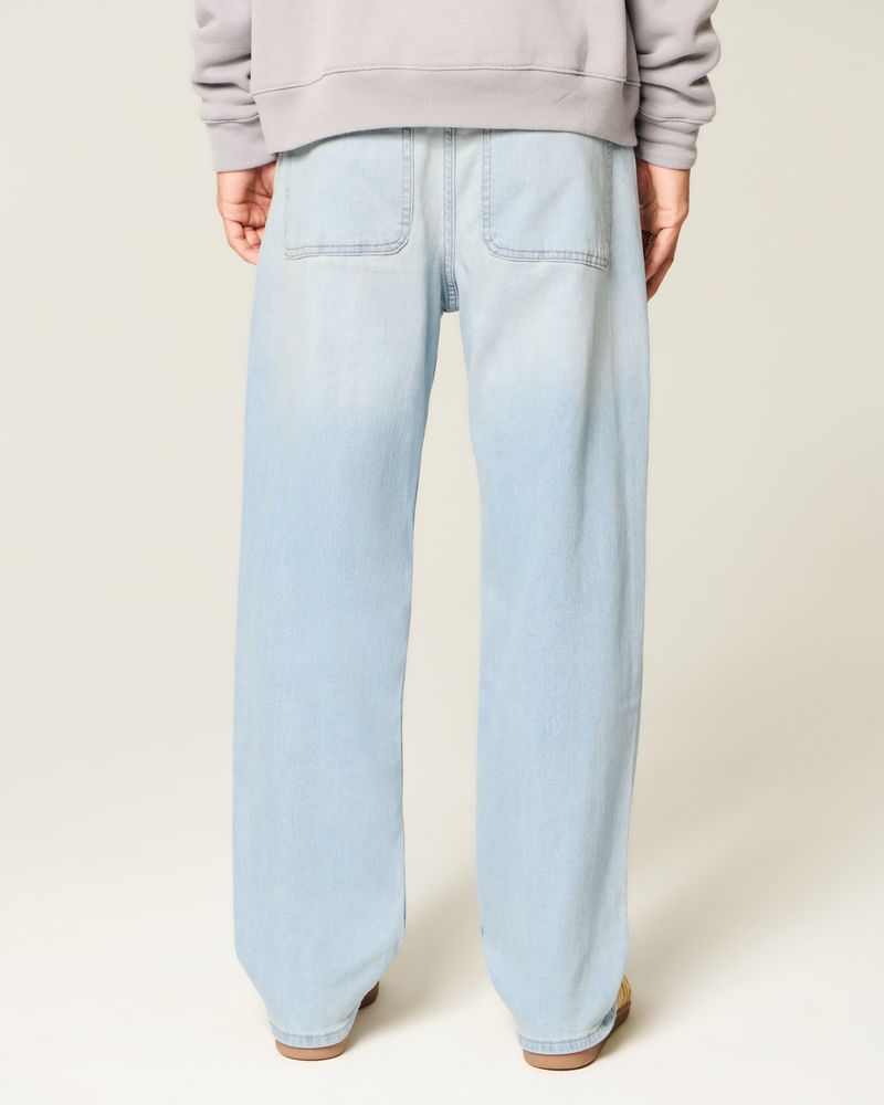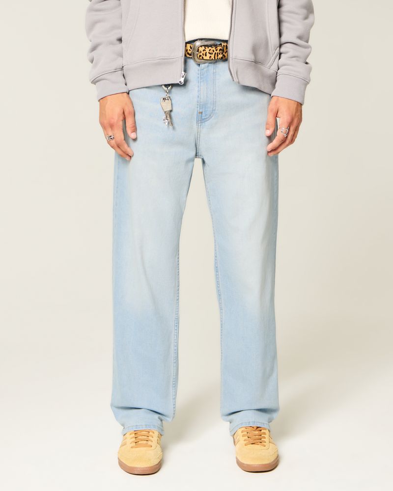 Comfortable denim jeans in a light wash, designed with a baggy leg. Fading. Imported.