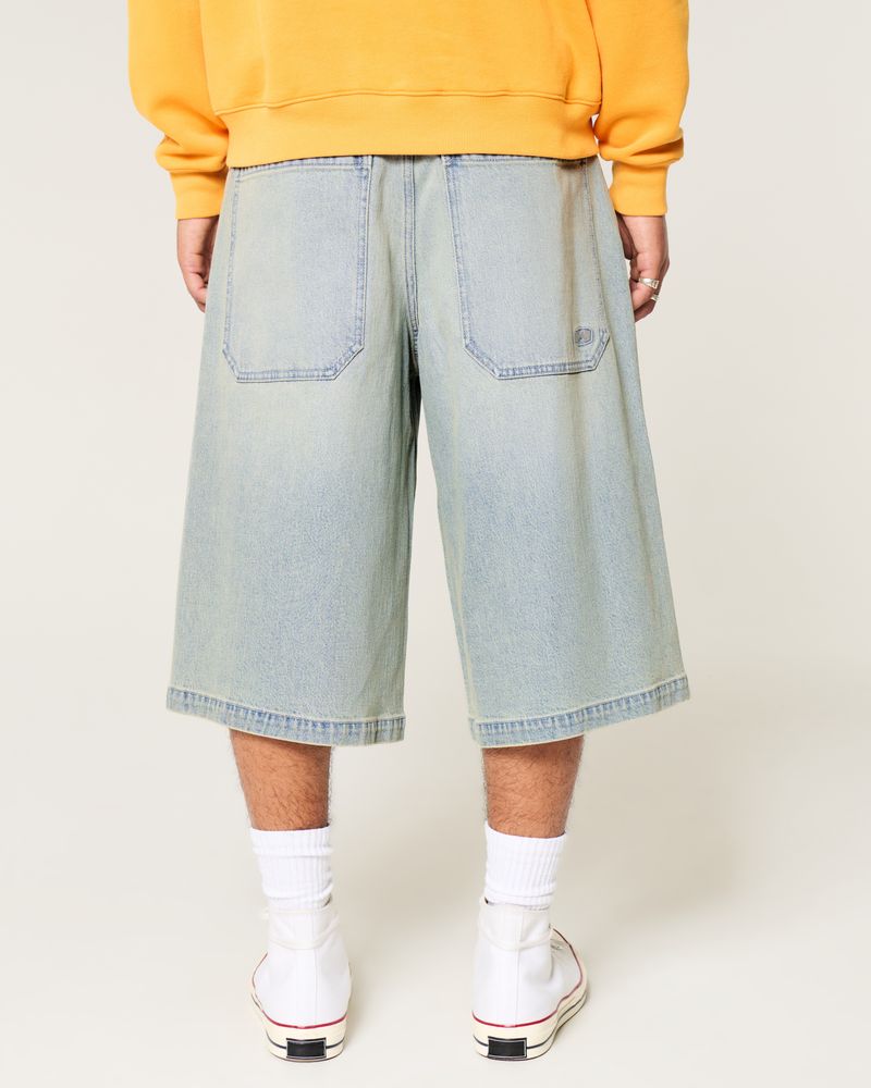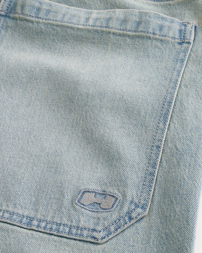Men’s Light Wash Half-Length Skater Baggy Jeans