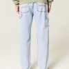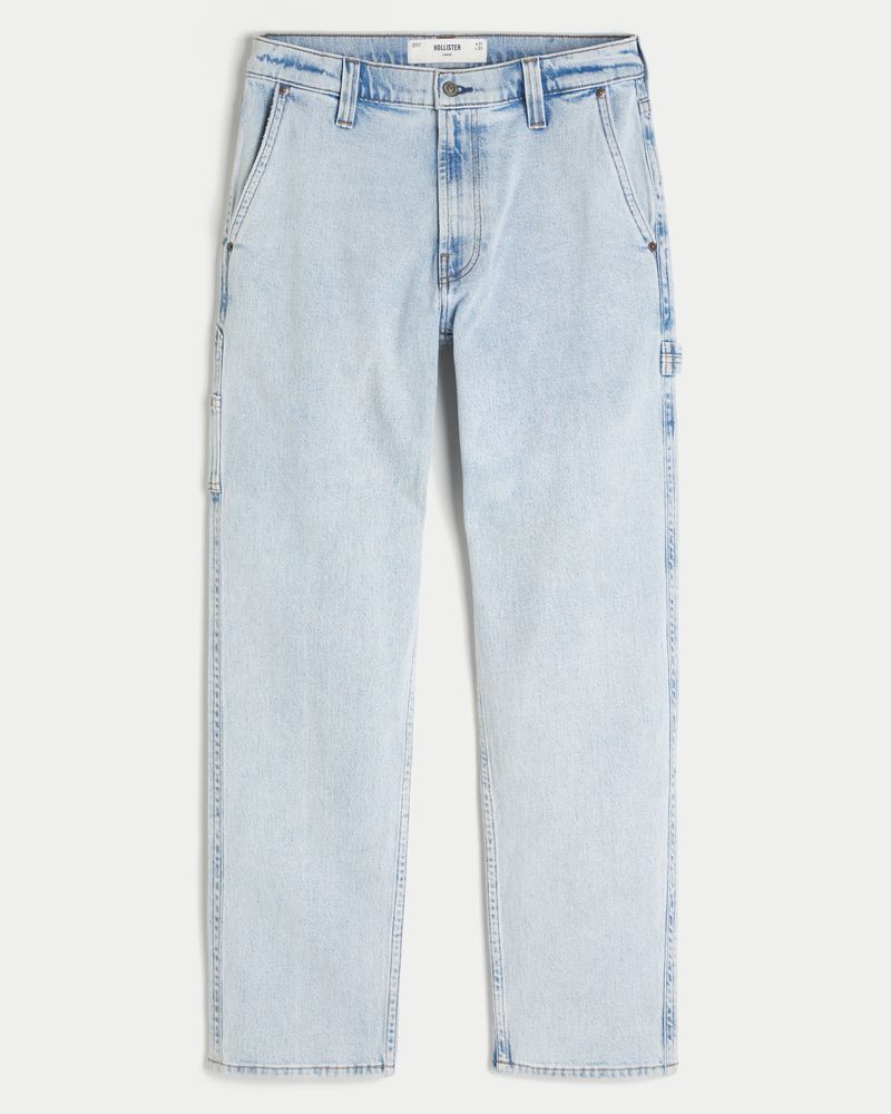 Comfortable denim jeans in a light wash, designed with a loose leg, left painter loop detail and extra pockets. Imported.
