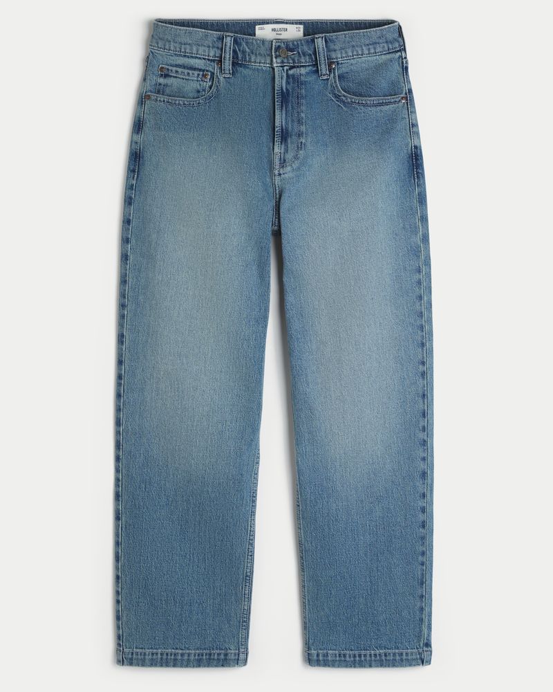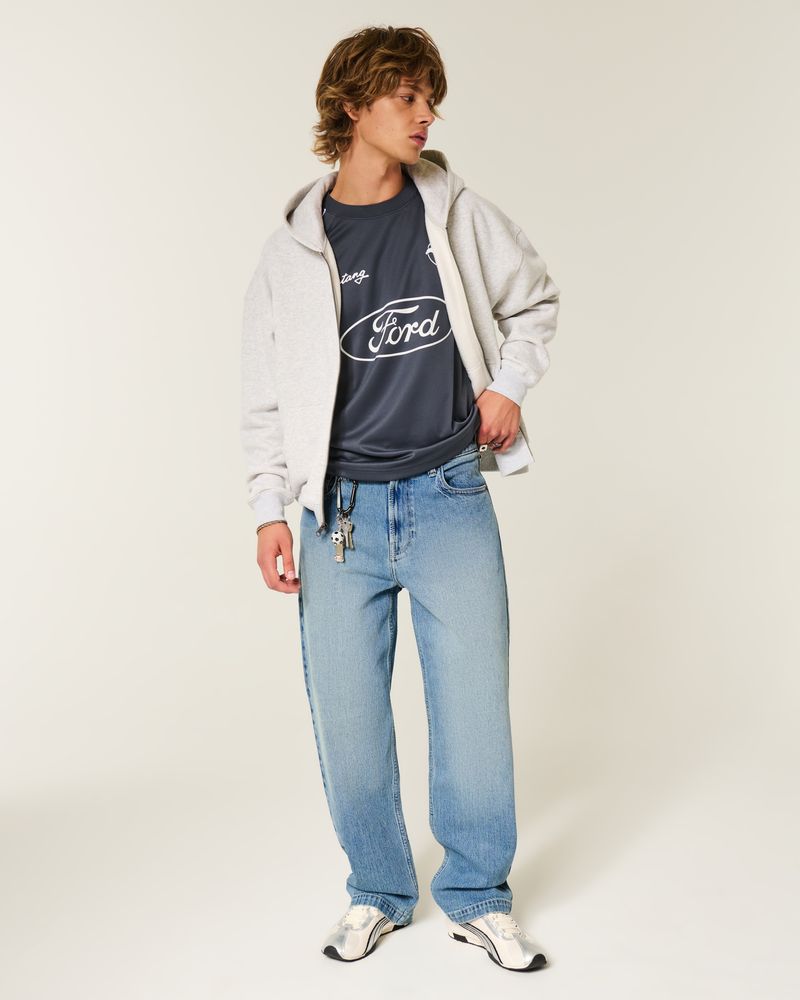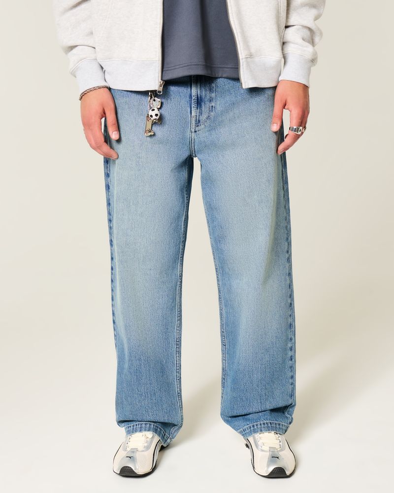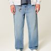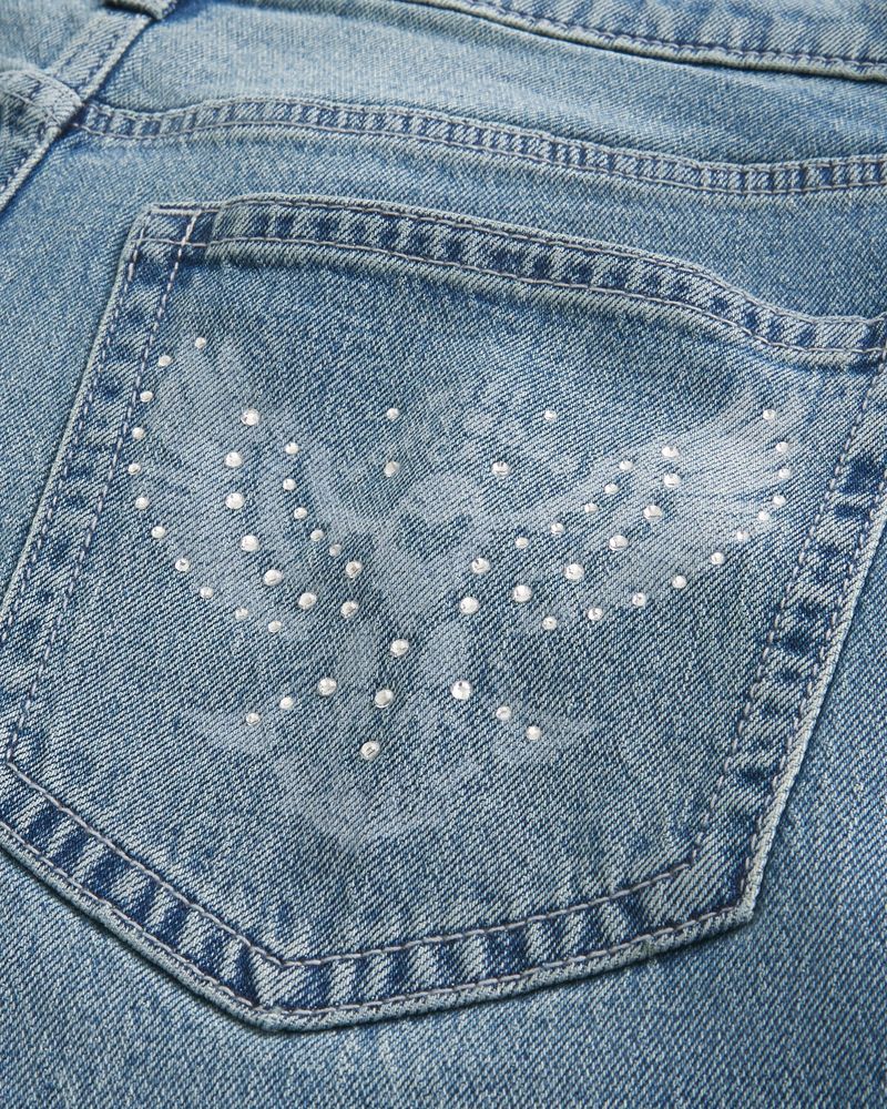 Men’s Medium Wash Eagle Graphic Baggy Jeans