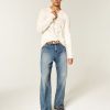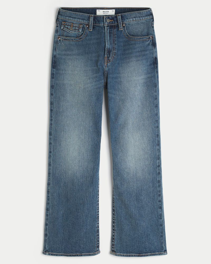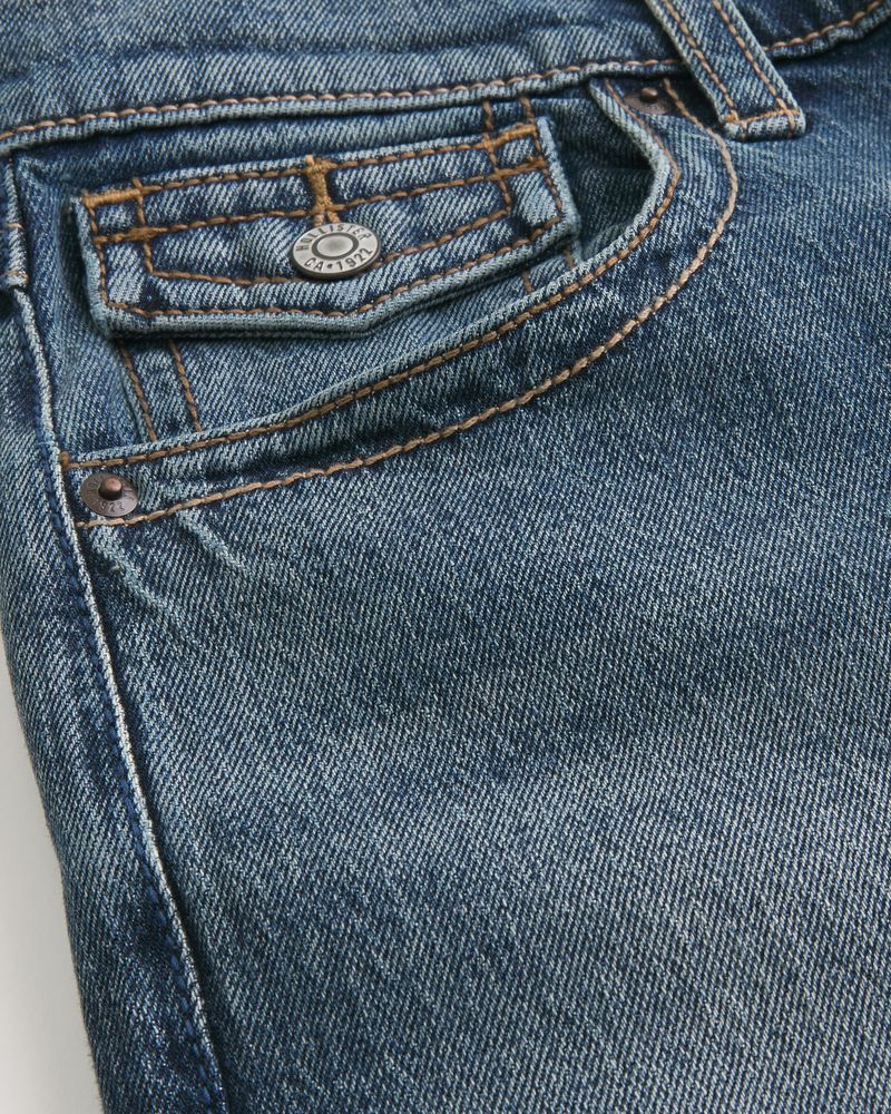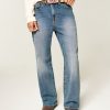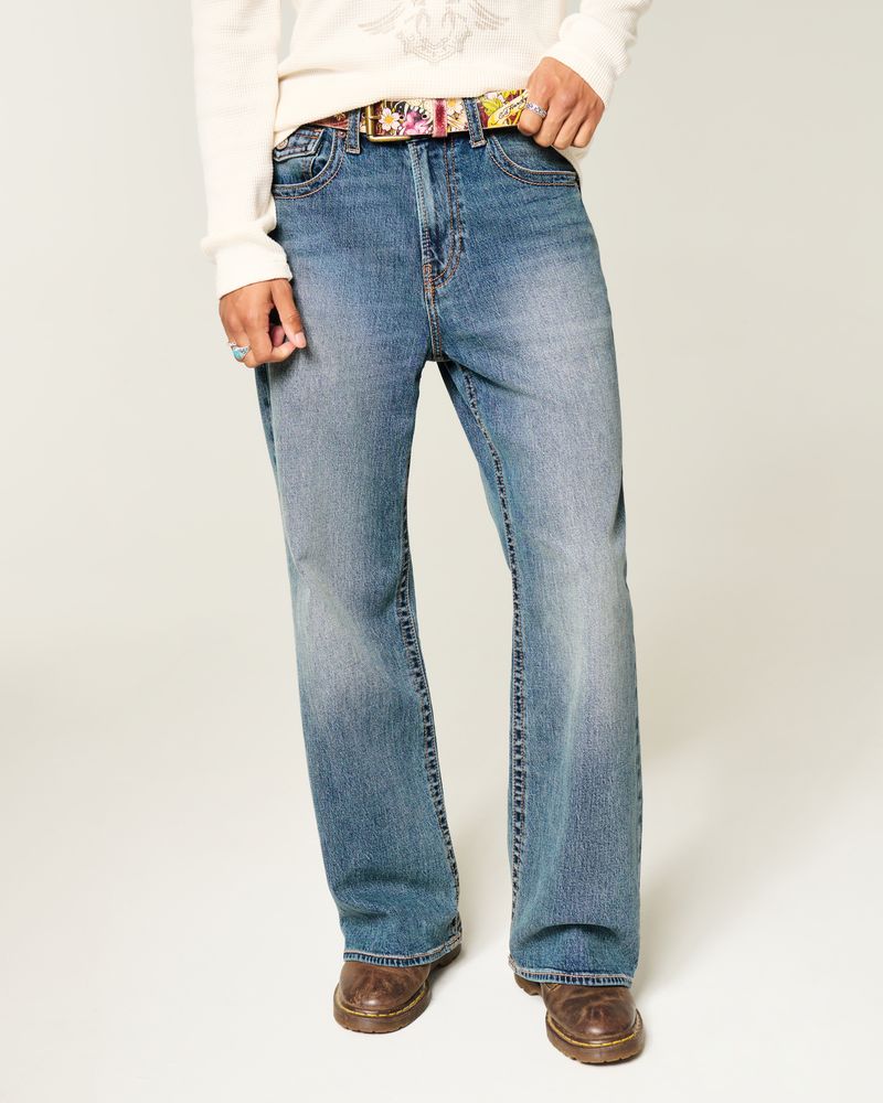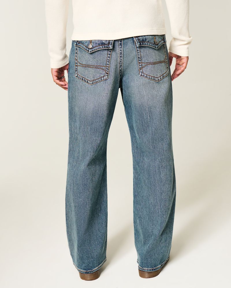 Medium Wash Flap Pocket Baggy Bootcut Jeans