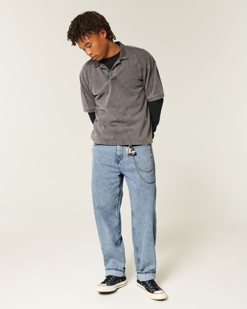 Comfortable denim skater jeans designed with a baggy leg. Medium wash. Imported.