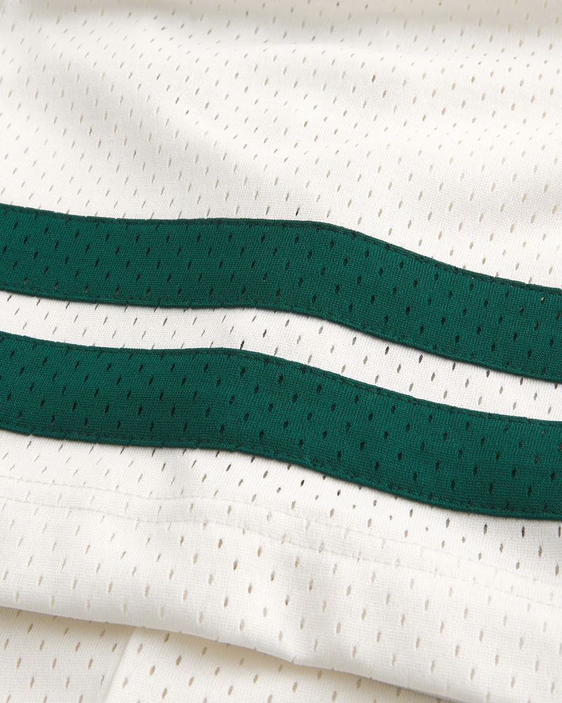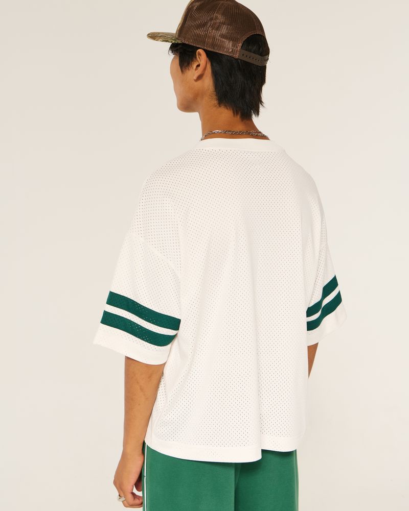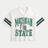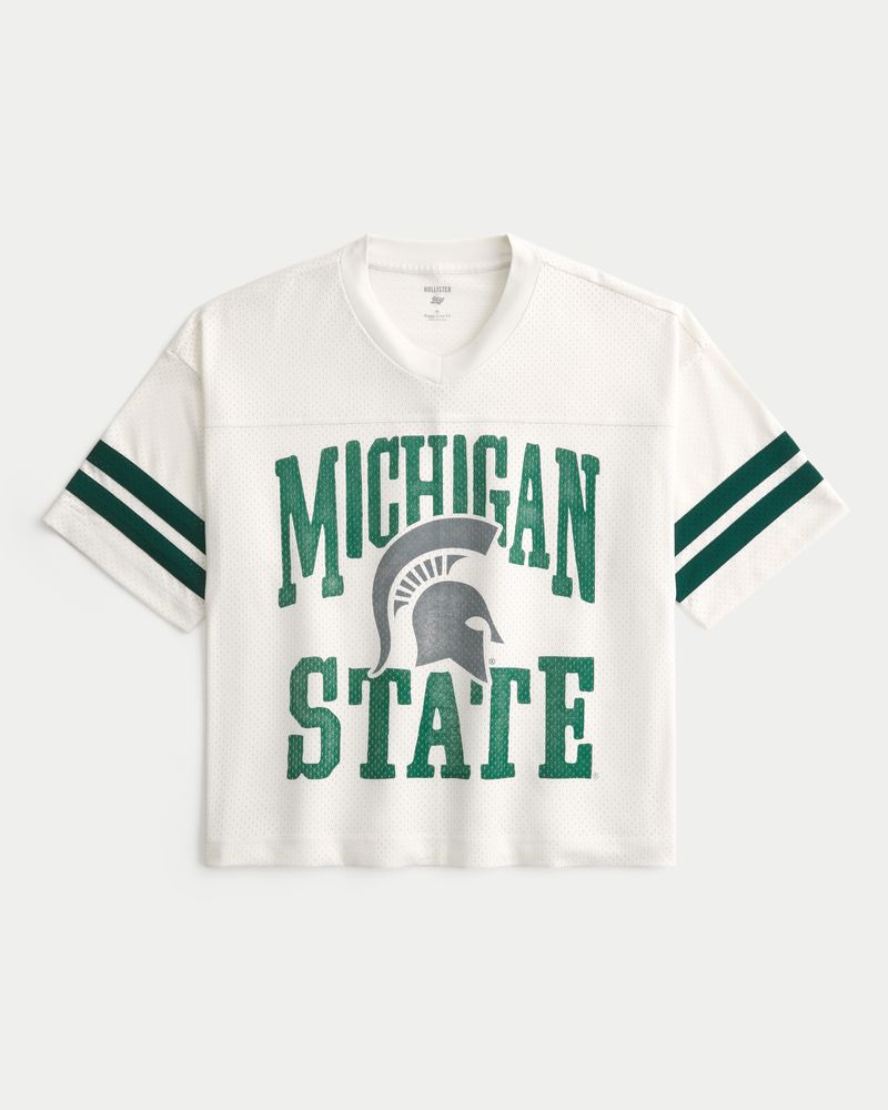 This classic football jersey is made with soft mesh fabric and features official licensed Michigan State University print graphics. V-neckline, short sleeves. Baggy Crop Fit. Imported.