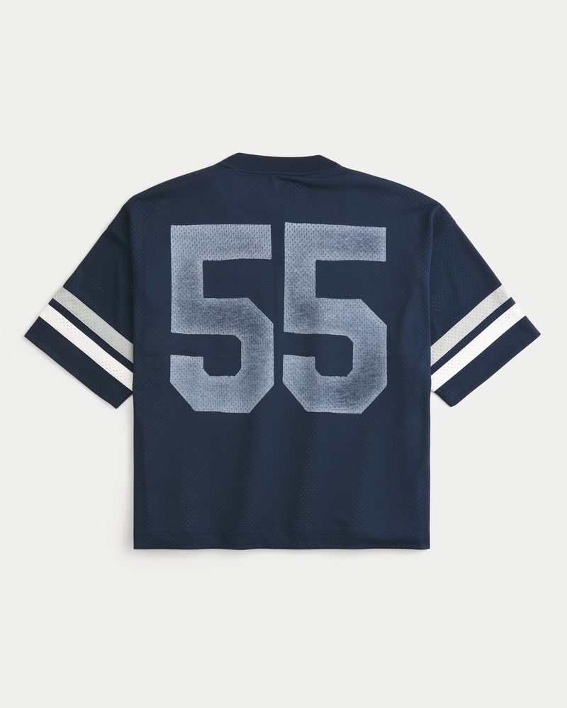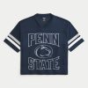 This classic football jersey is made with soft mesh fabric and features official licensed Penn State University print graphics. V-neckline, short sleeves. Baggy Crop Fit. Imported.