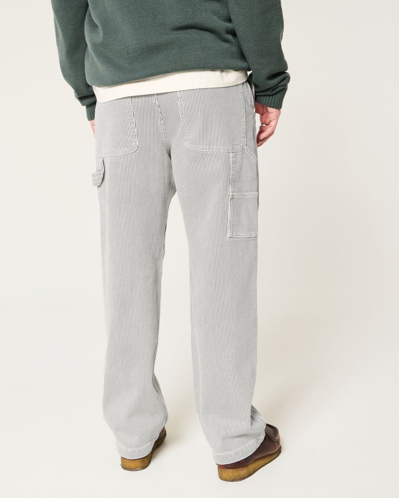 Ultra-comfortable painter-style denim jeans designed with a baggy leg. Classic railroad stripe pattern, left loop detail, extra pockets. Imported.