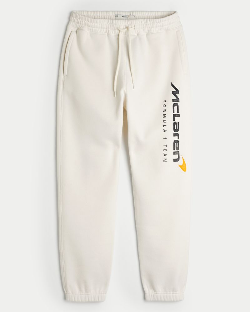 Super soft fleece joggers designed with a relaxed leg, featuring official licensed McLaren Formula 1 Team print graphics. Pockets, drawstring waist, banded hems, right zipper pocket. Imported.