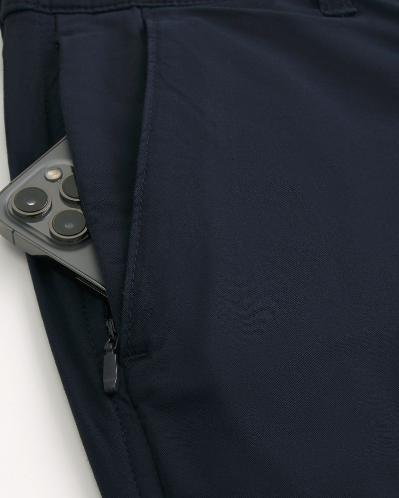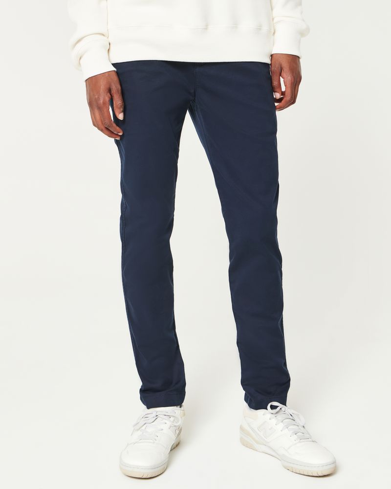 Ultra-comfortable twill chino pants with stretch, designed with a slim leg from top to bottom. Pockets, right zipper pocket. Imported.