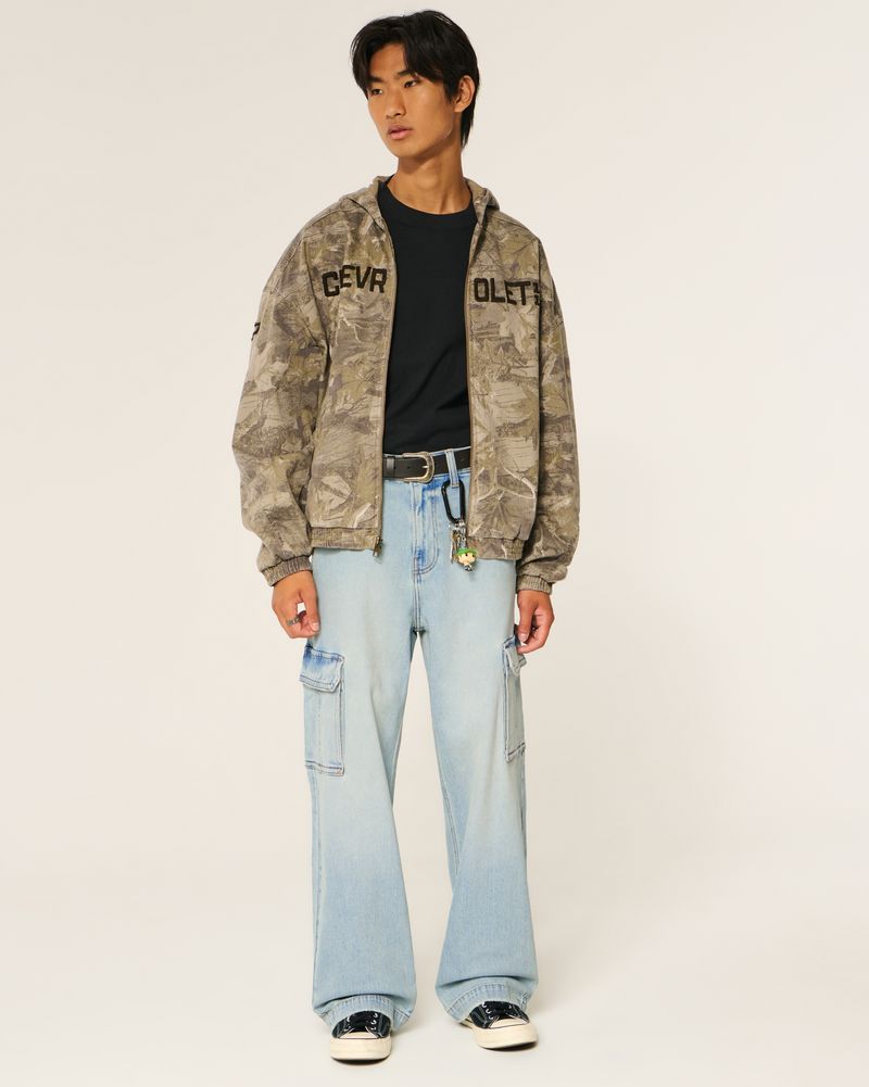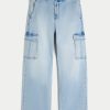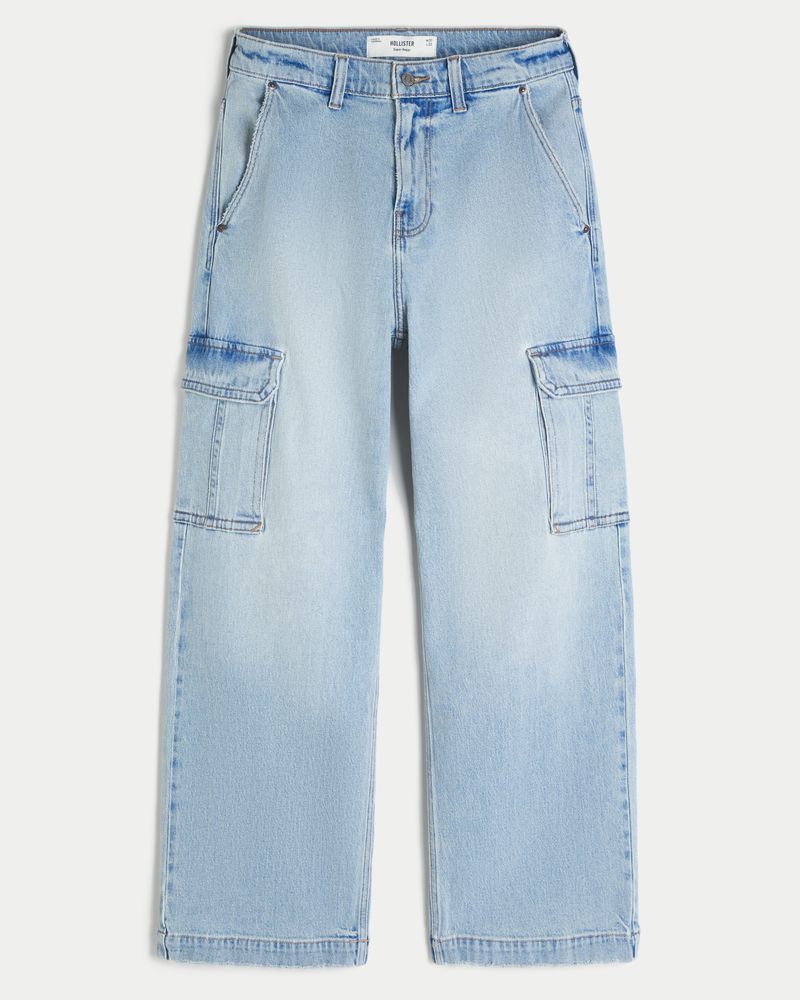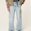 Comfortable denim jeans designed with a super baggy leg and side cargo pockets. Fading. Imported.