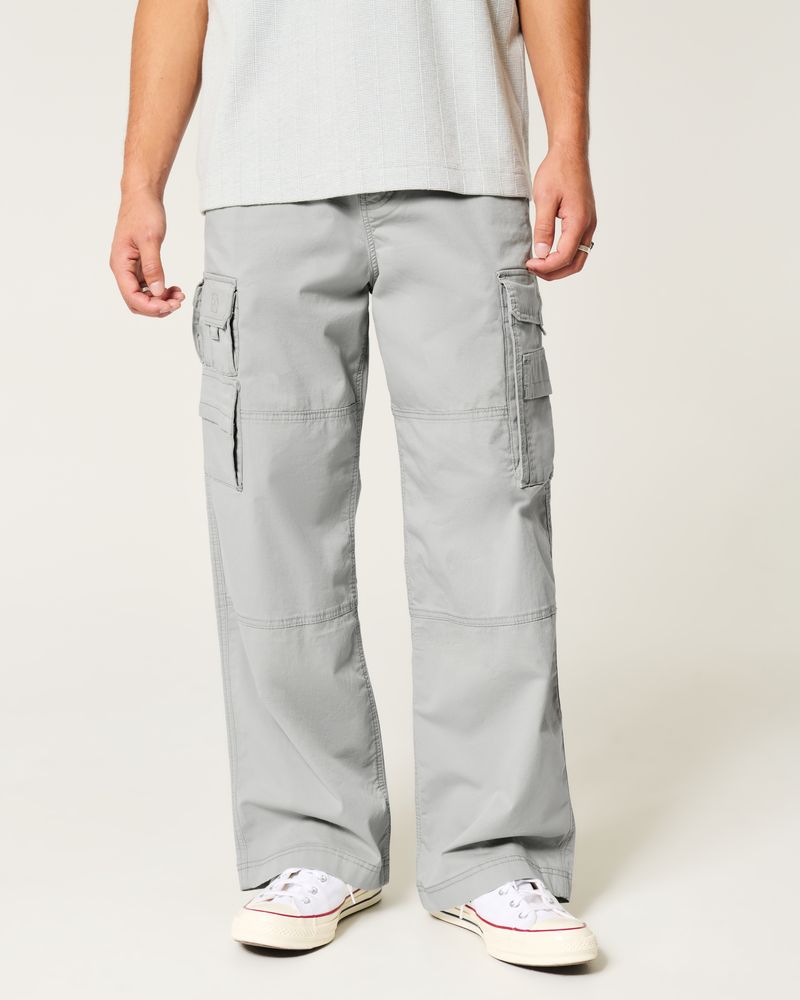 Comfortable twill pants with stretch, designed with a super baggy leg and side cargo pockets. Stretch. Imported.