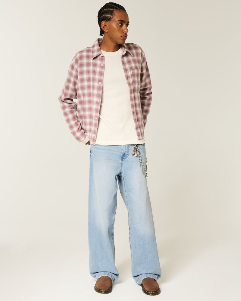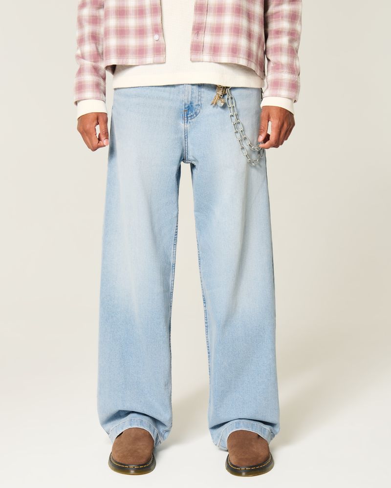 Comfortable denim jeans designed with a super baggy leg. Fading, whiskering. Imported.