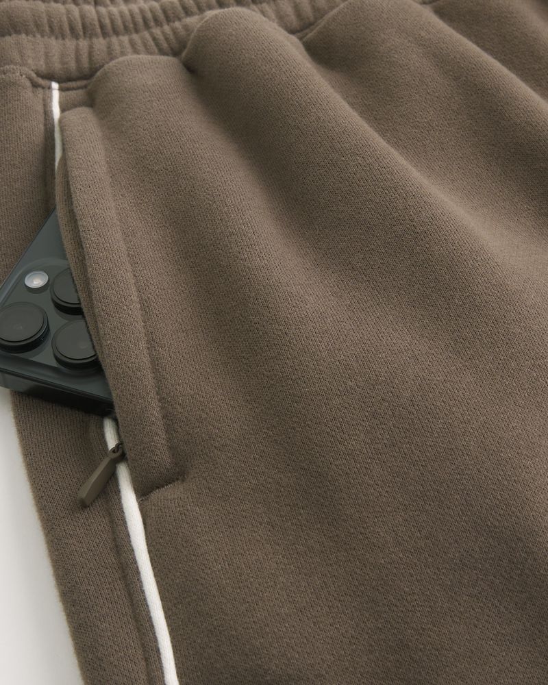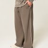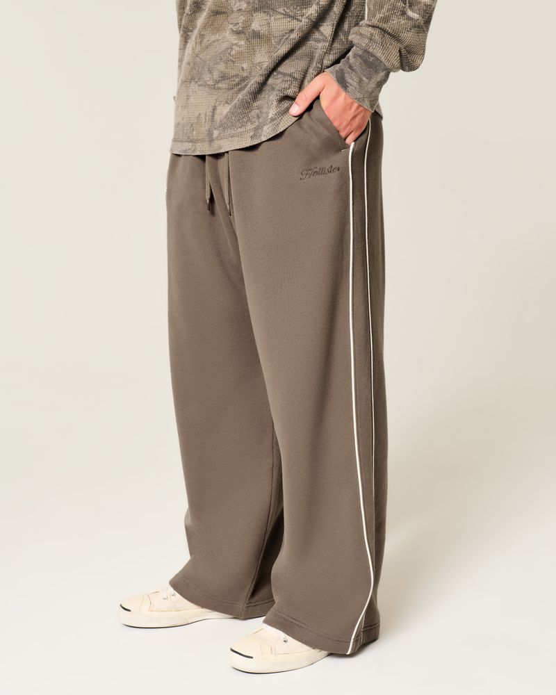 Soft fleece sweatpants designed with a super baggy leg and drawstring waist. Piping along the sides, embroidered logo detail, pockets, right zipper pocket. Imported.