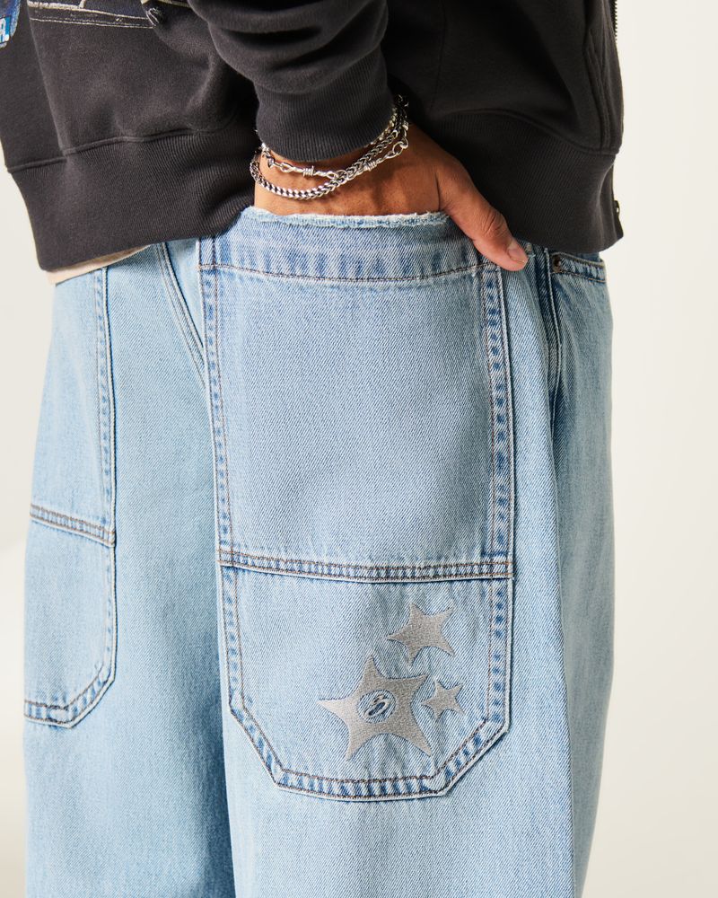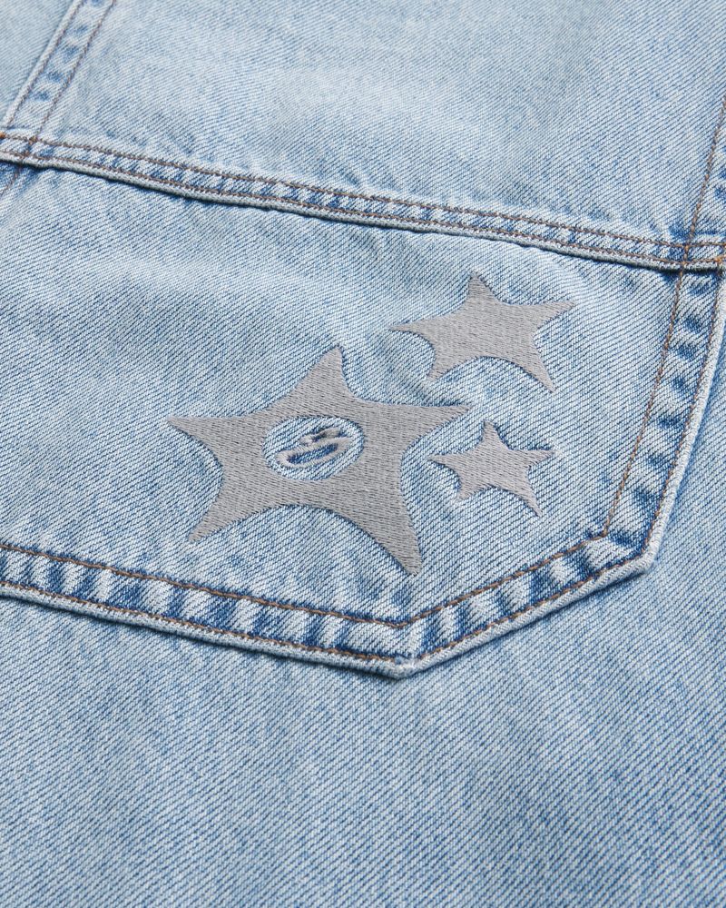 Introducing the Big Jean, designed with an ultra-baggy leg. Light wash, embroidered star details at back pocket. Imported.