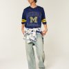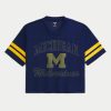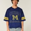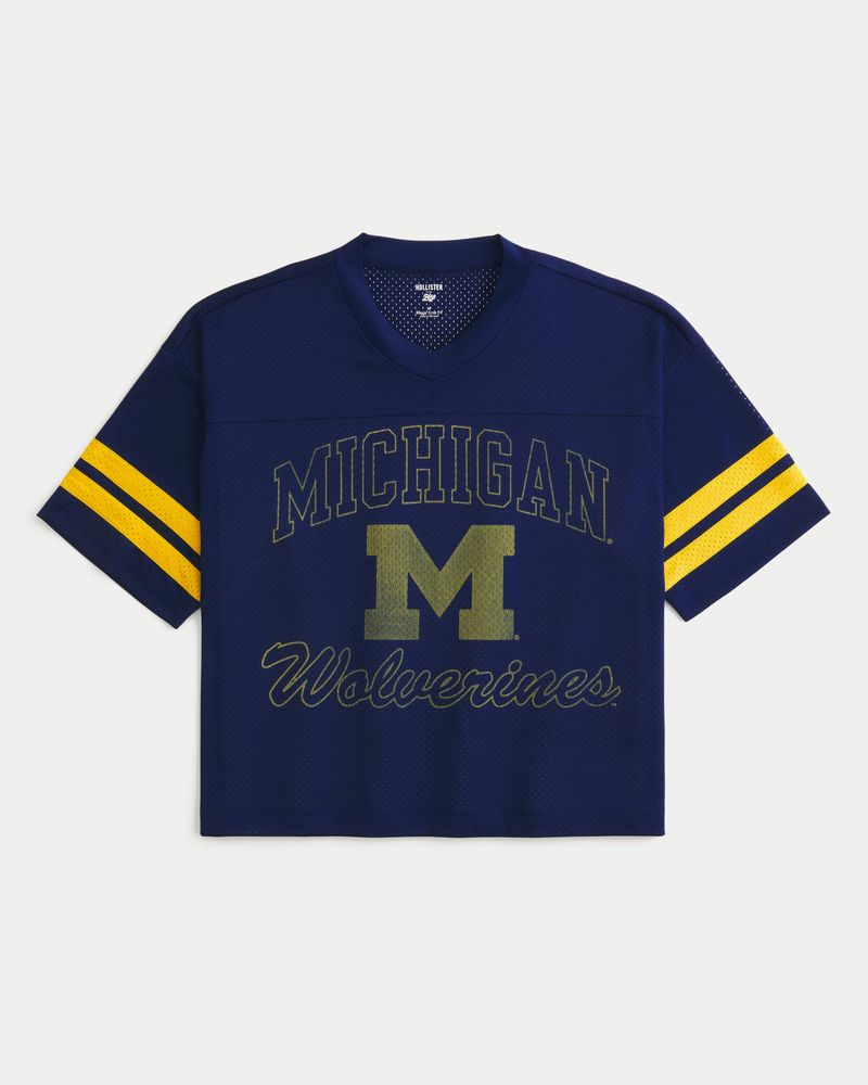 This classic football jersey is made with soft mesh fabric and features official licensed University of Michigan print graphics. V-neckline, short sleeves. Baggy Crop Fit. Imported.