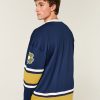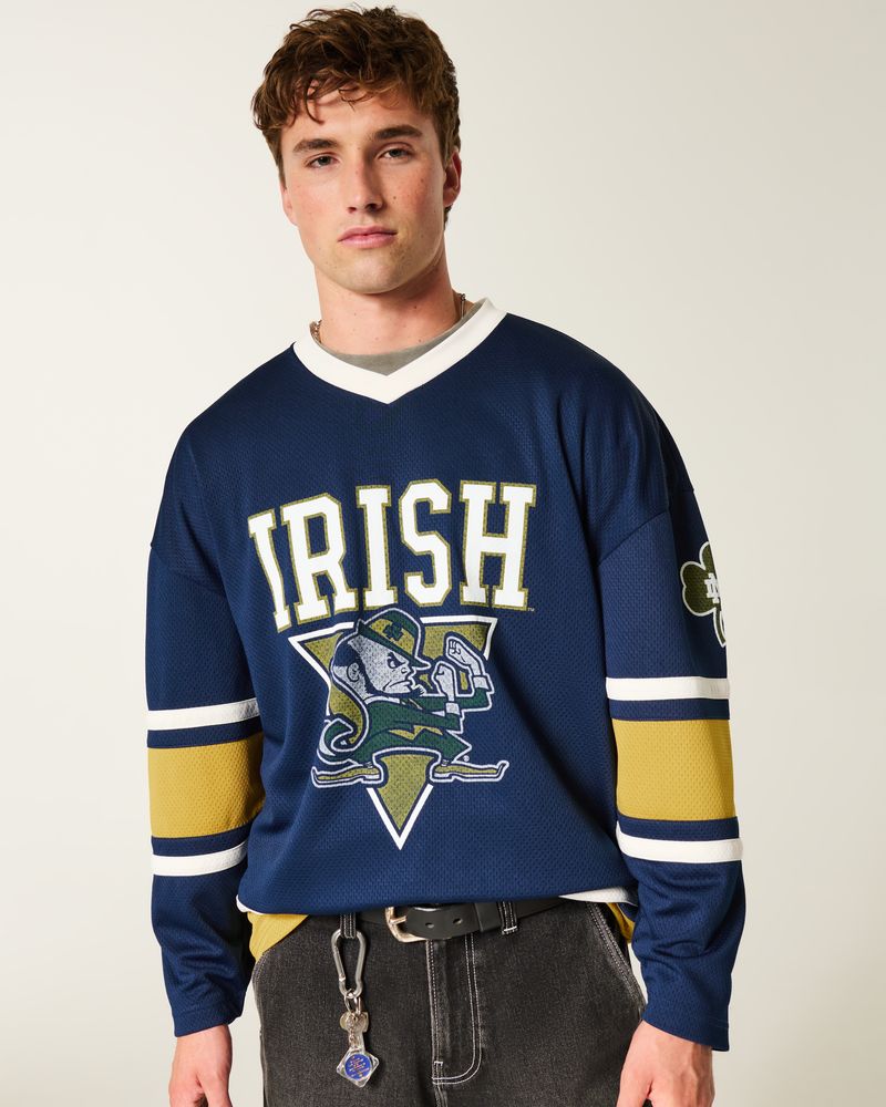 A classic hockey jersey in super soft mesh fabric, featuring official licensed University of Notre Dame Fighting Irish print graphics. V-neckline, long sleeves. Imported.