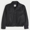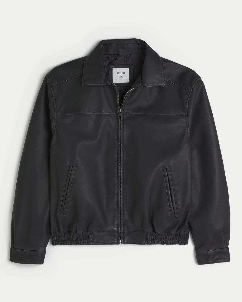 A classic jacket in faux leather, designed with a full zip-up closure and front pockets. Chest seam detail, banded hem, collar. Imported.