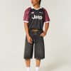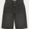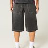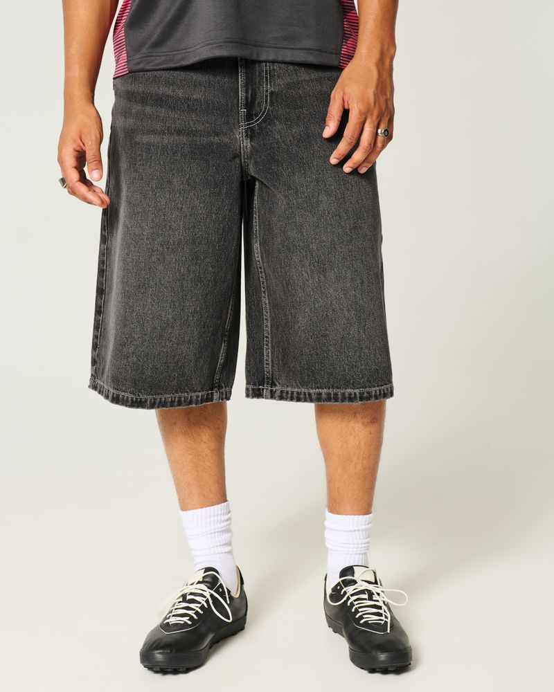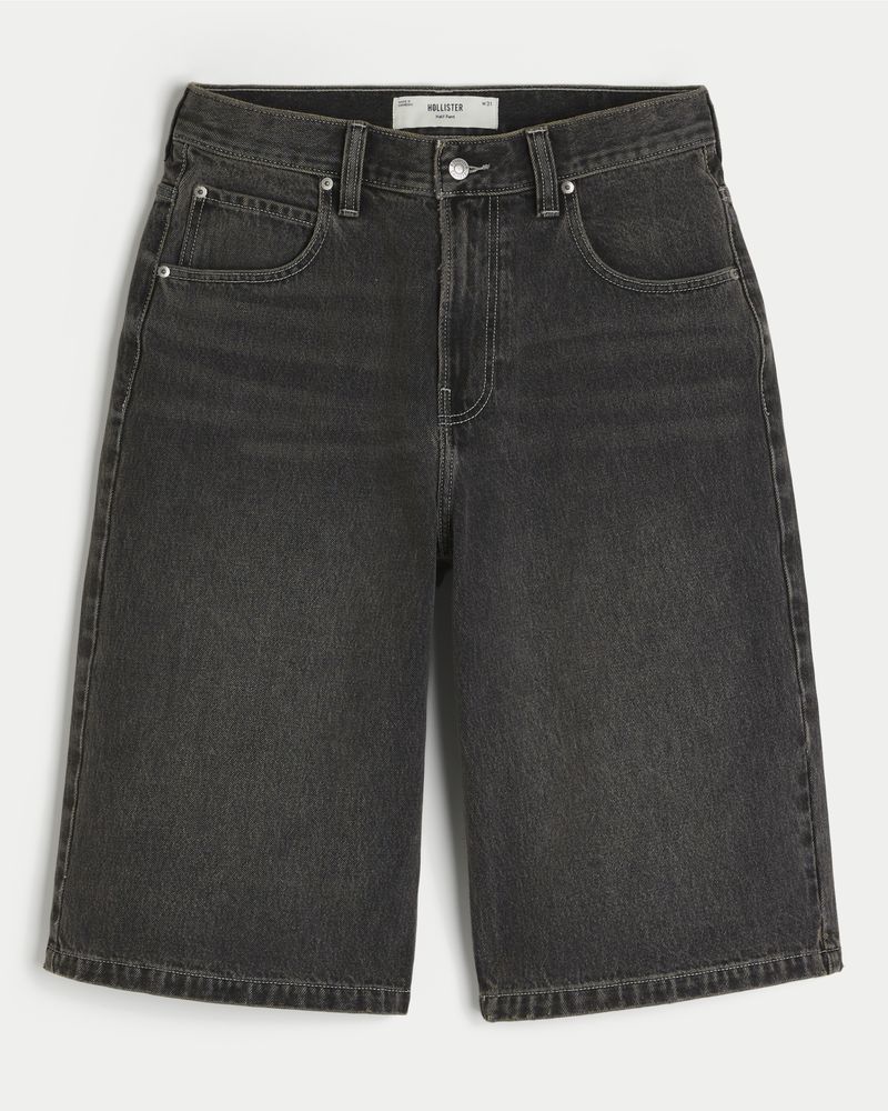 Classic denim half pants designed with a baggy leg. Washed black with fading and whiskering. Imported.