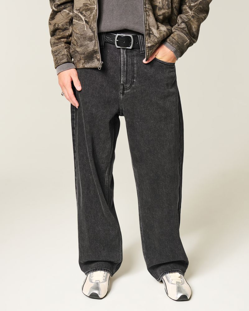 Comfortable denim jeans in washed black, designed with a baggy leg. Official licensed Dodge Hellcat graphic embroidery at the back pocket. Imported.