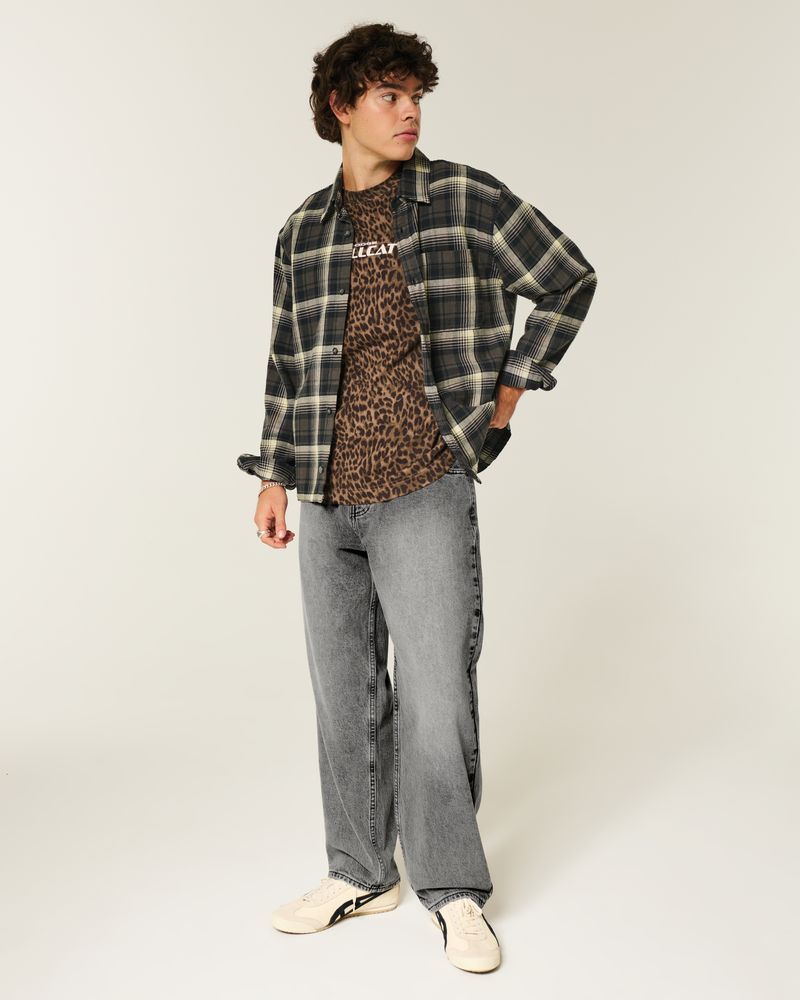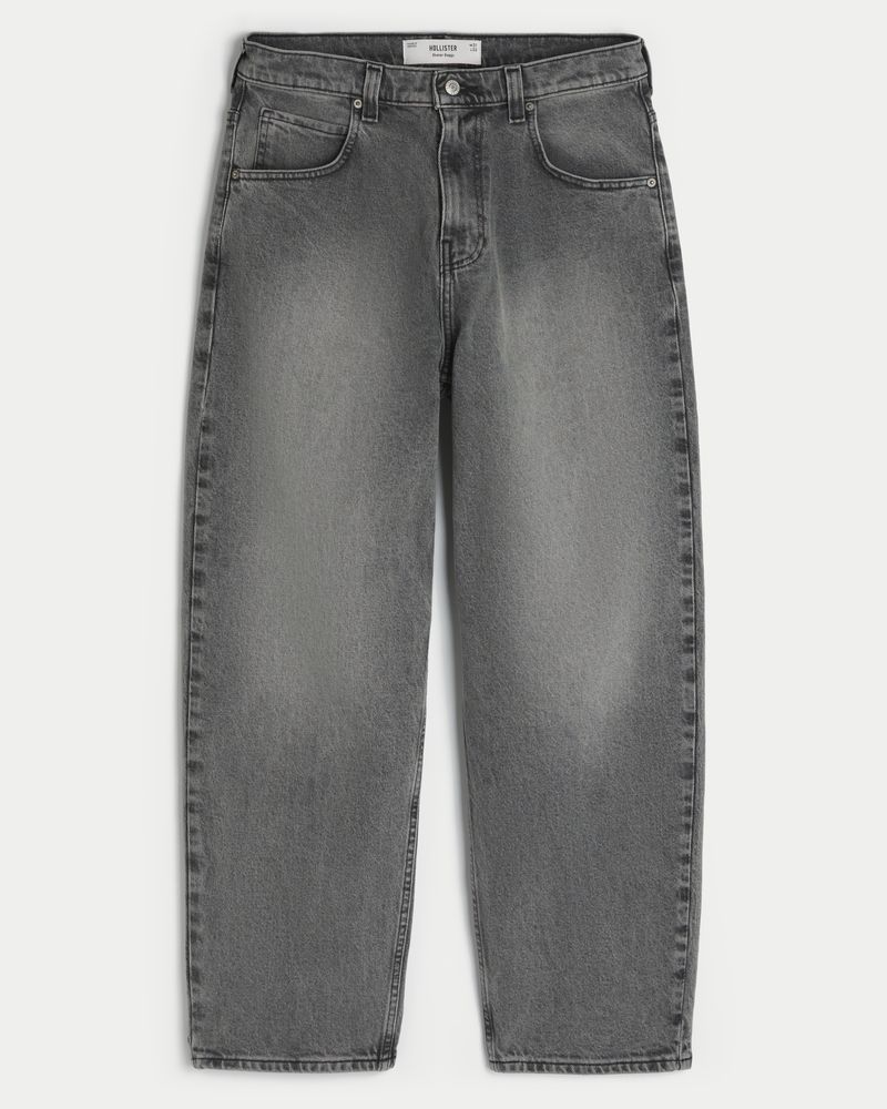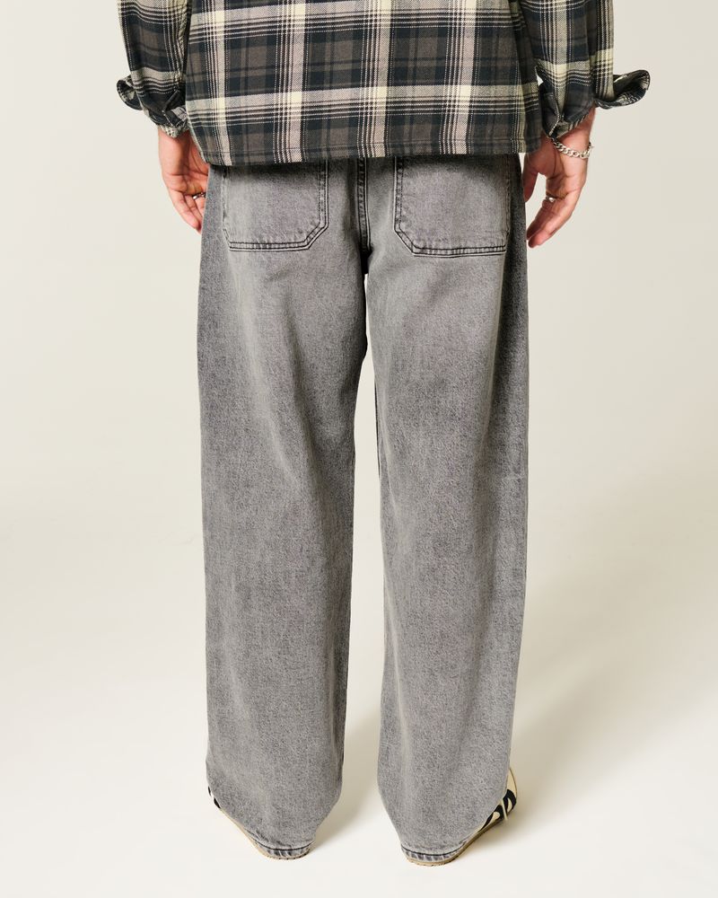 Comfortable denim skater jeans designed with a baggy leg. Washed gray with fading, classic 5-pocket styling. Imported. Imported.