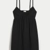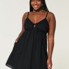 This soft and flowy mini dress is designed with a cute babydoll silhouette and features a bra-covering back detail and pockets. V-neckline with tie detail, adjustable straps. Imported.