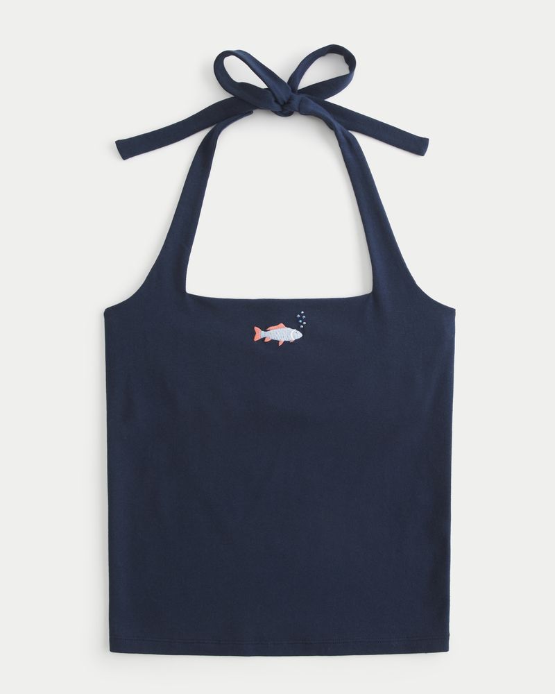 Women’s Beaded Graphic Halter Top