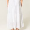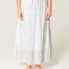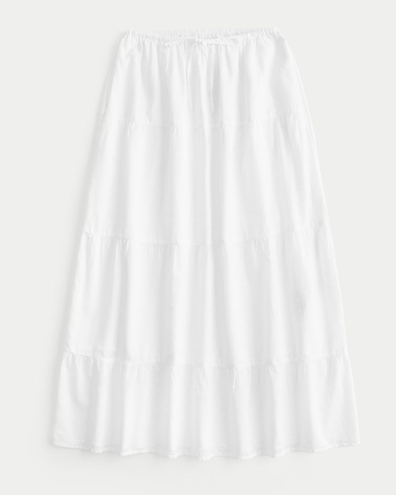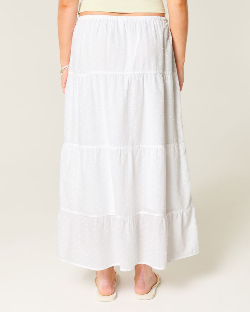 Flowy and super soft, this maxi-length skirt has an adjustable-rise waist and textured clip dot fabric. Tiered details. Imported.