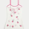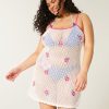 A cute and comfy swim cover up dress in soft crochet-style fabric, featuring all-over floral embroidery. Imported.