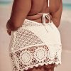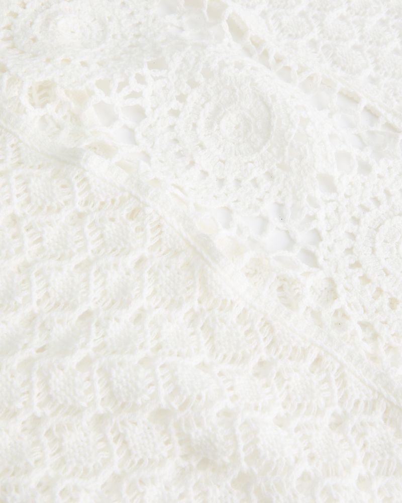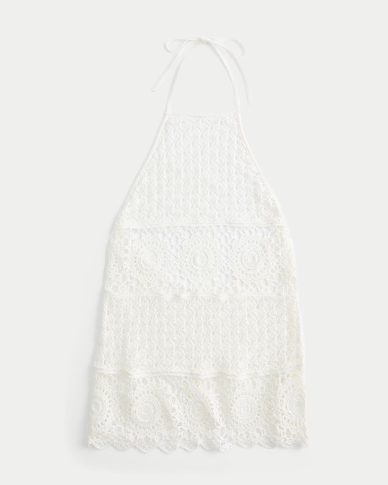 This cute and comfy swim cover up dress is made with super soft crochet-style fabric with pretty all-over patterns. Halter straps. Imported.